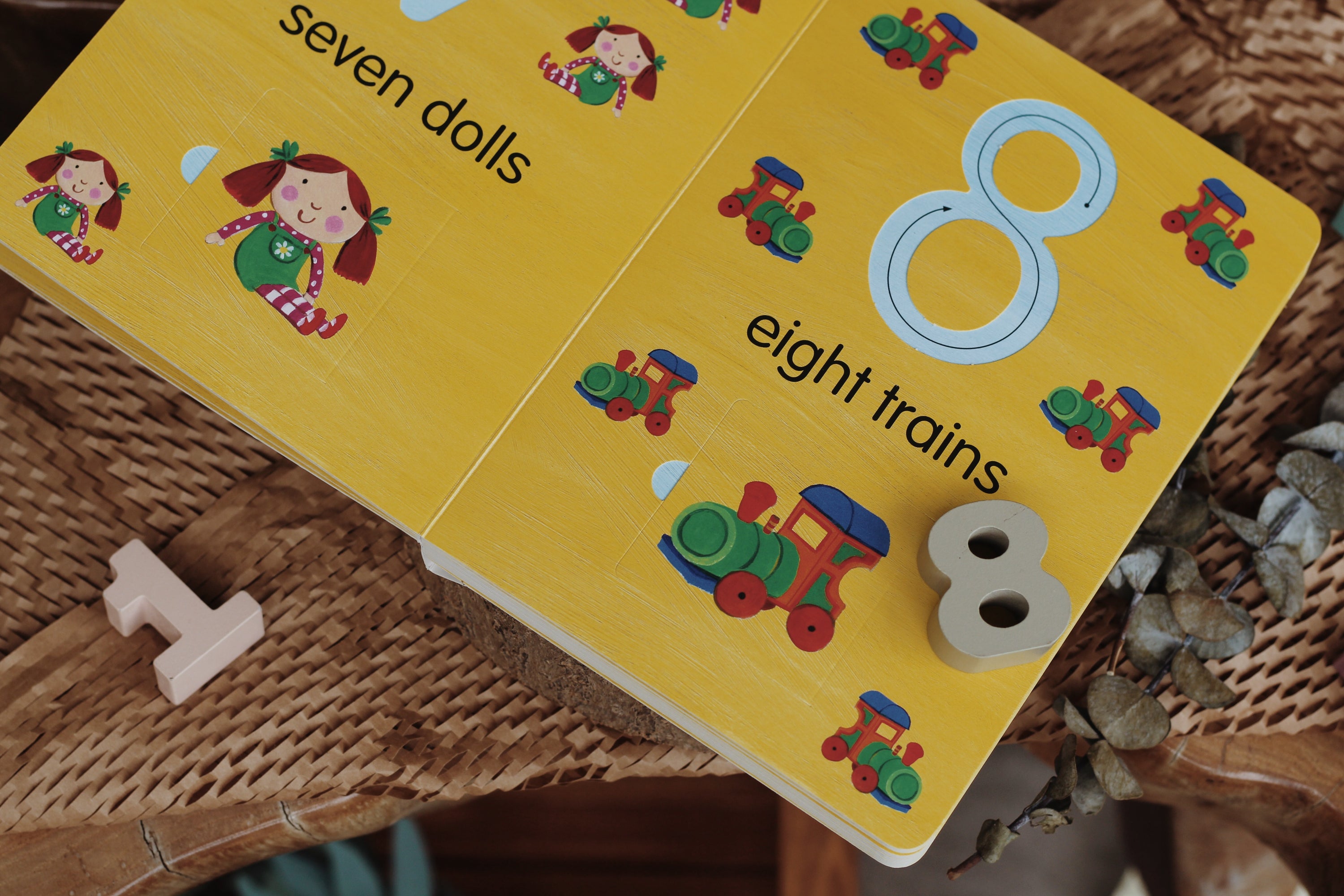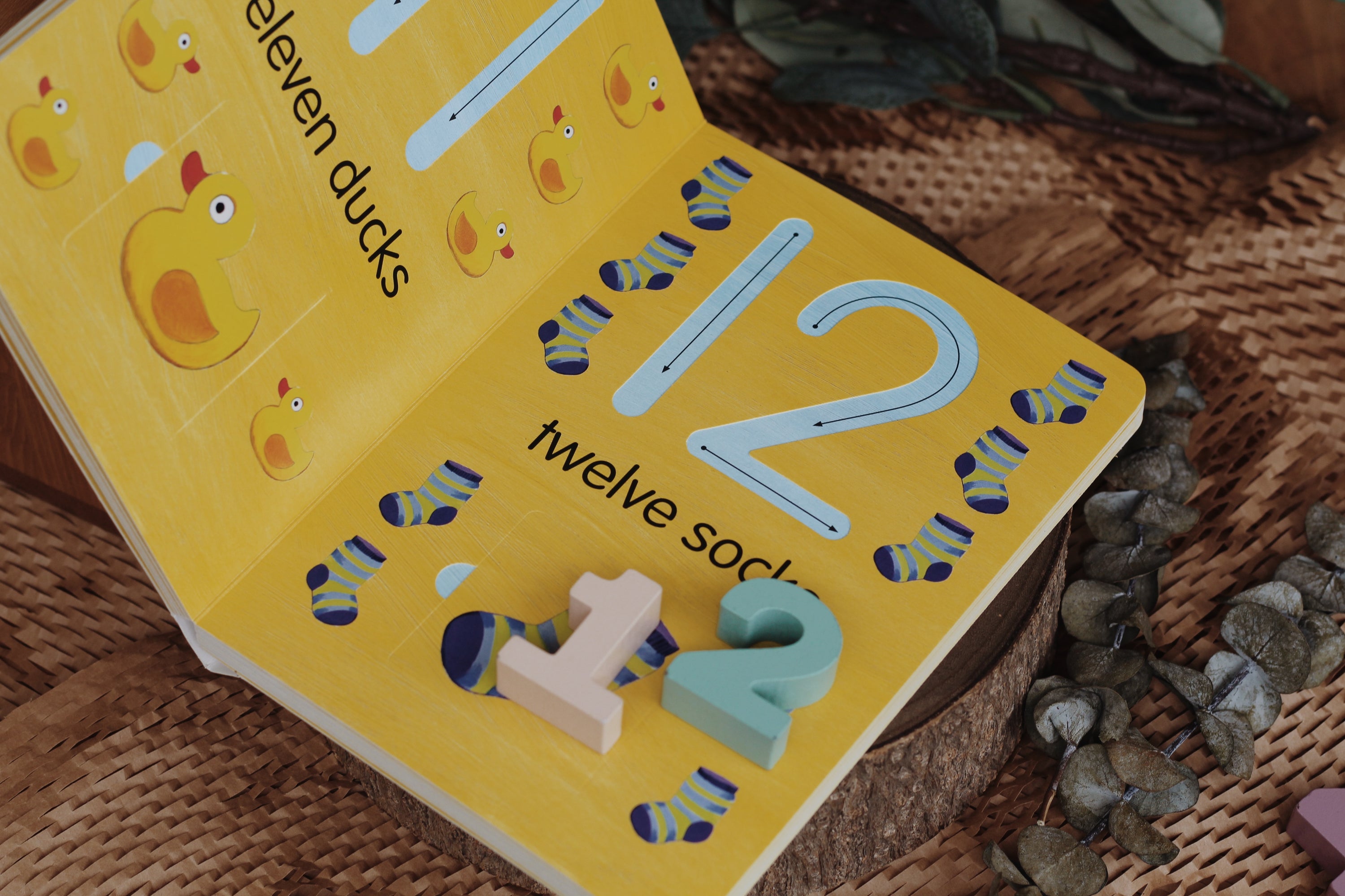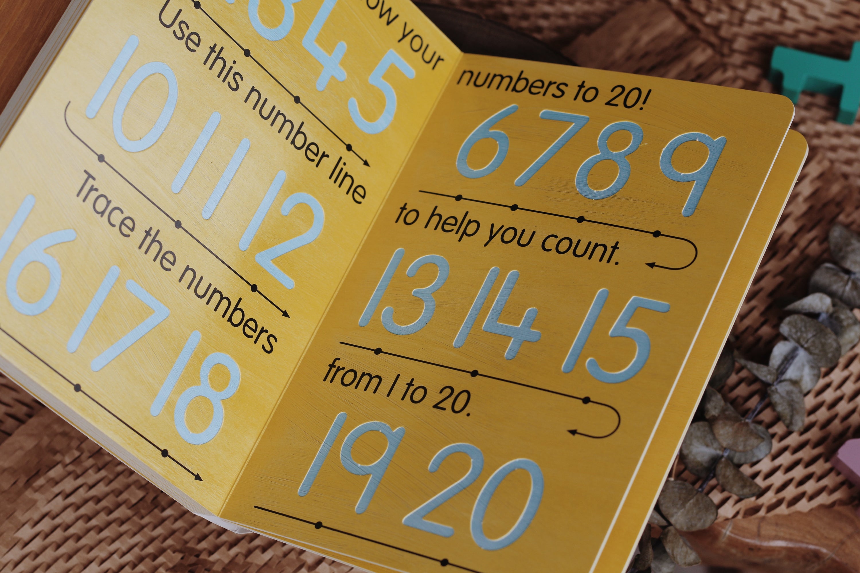 This innovative, interactive trace-and-flip book introduces children to numbers 1 through 20 and the early concept of counting. Features number tracks to trace with a finger to learn number formation, as well as flaps to lift, and bright, bold illustrations. This unique, innovative trace-and-flip book offers an engaging new way for children to discover numbers 1 through 20 and learn to count! Young readers can trace each number by following the tracks with a finger to become familiar with its shape. A colorful lift-the-flap on every sturdy board page includes one of the featured objects to encourage counting. To reinforce learning, caregivers are encouraged to help children trace each number as they say its name; point to each picture while counting the objects; and practice hand-eye coordination as they lift the flap on each page.