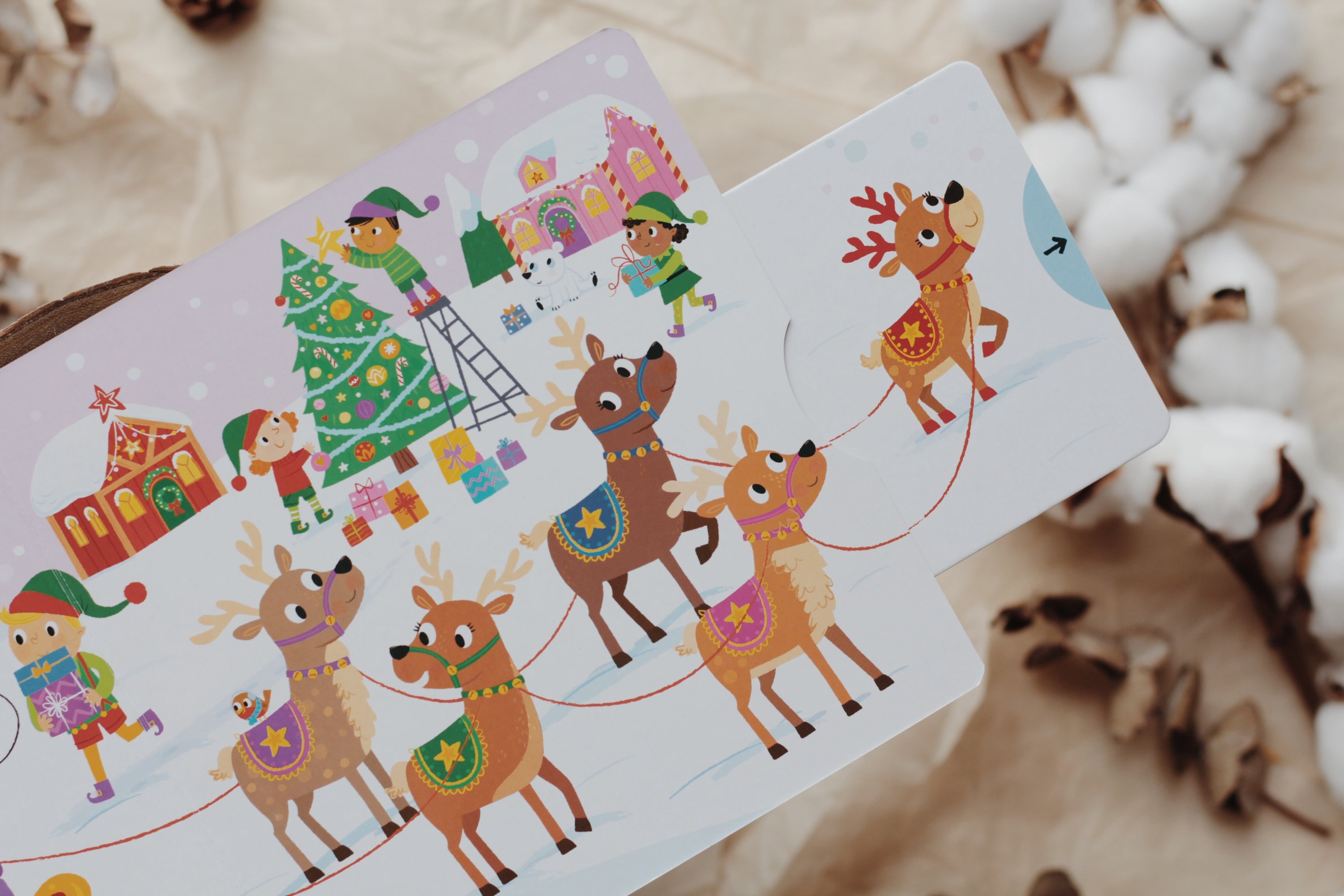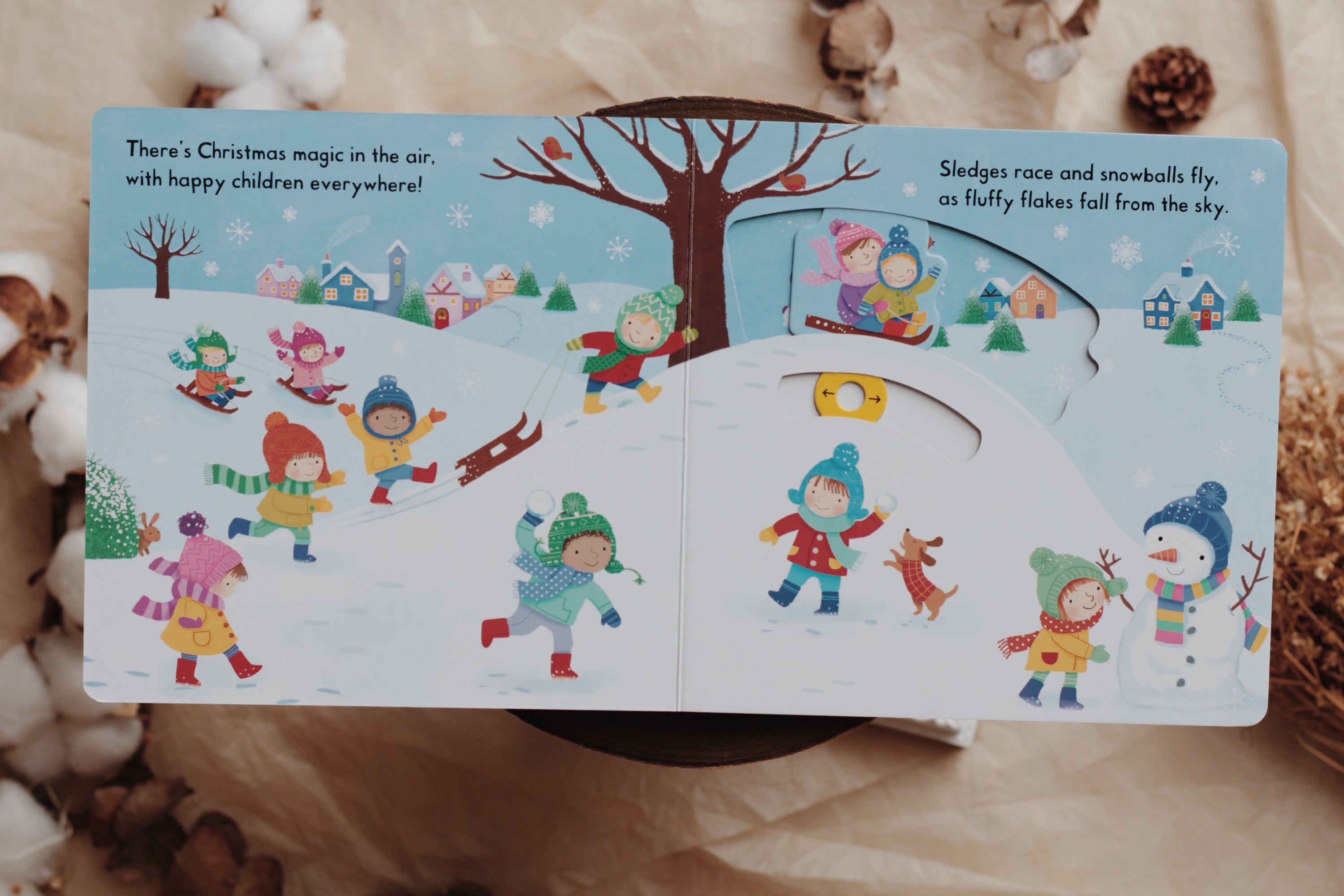Join in the festive fun as two small children prepare for Christmas day. There's something to push, pull or spin on every spread!ย Watch snowmen grow, sledges slide and trees being trimmed, then push the tab to see what happens on Christmas Eve . . . have the children been good? Will Santa come?