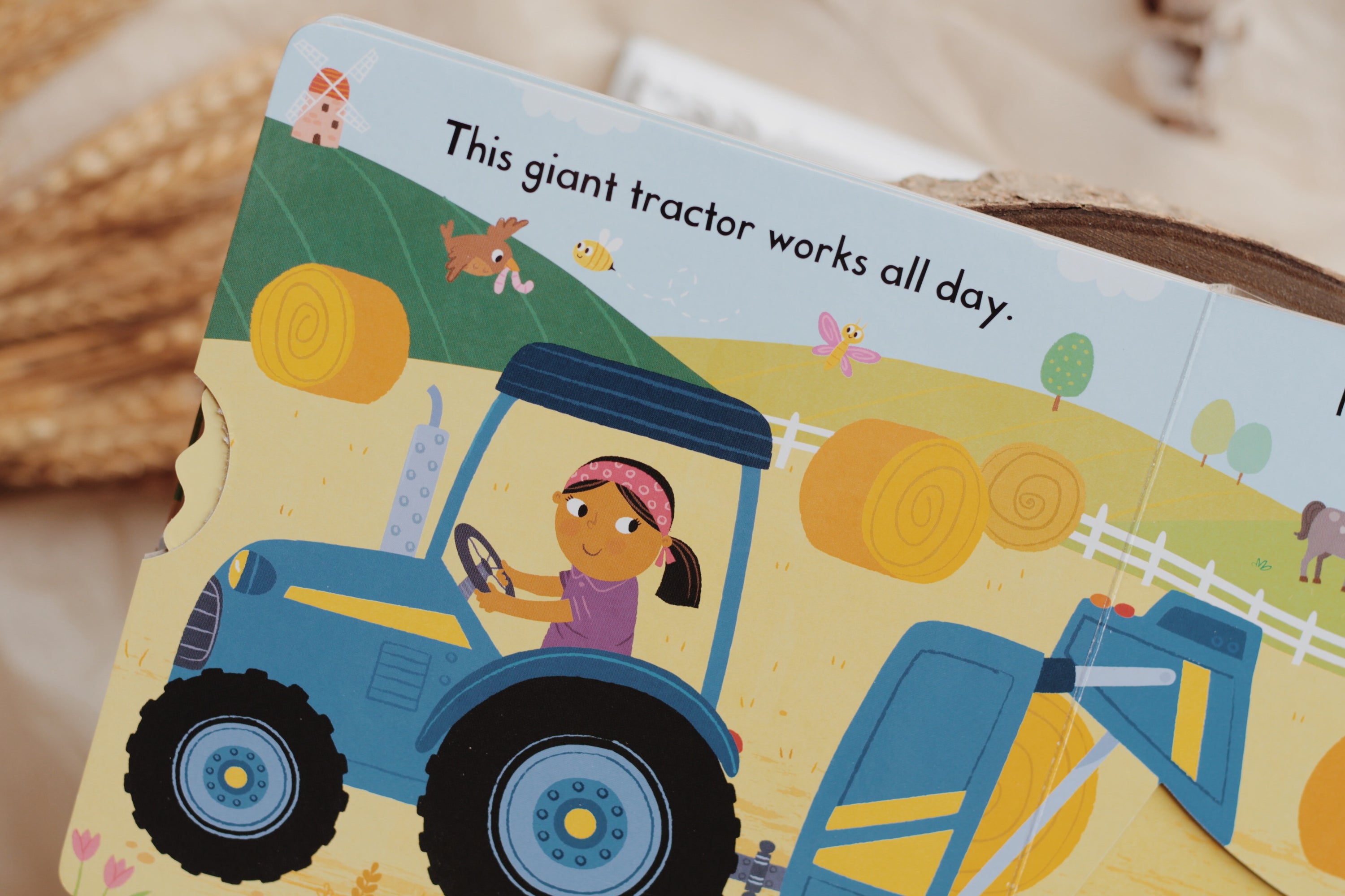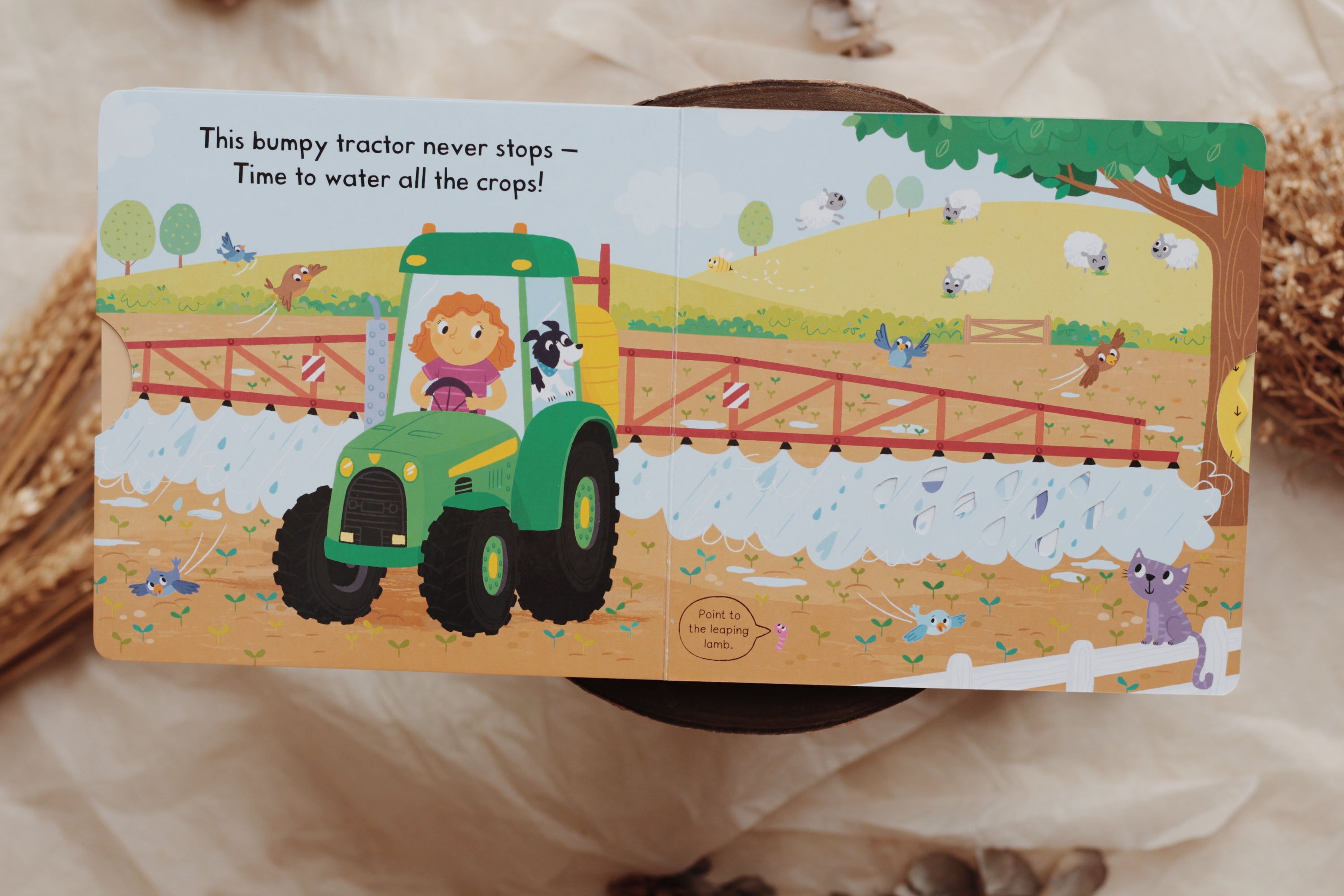 With lots to see in Busy Tractor, young children can help out on the farm, pulling and turning the tabs. See the big tyres turn, drive the tractor through fields and harvest a crop of tasty vegetables!