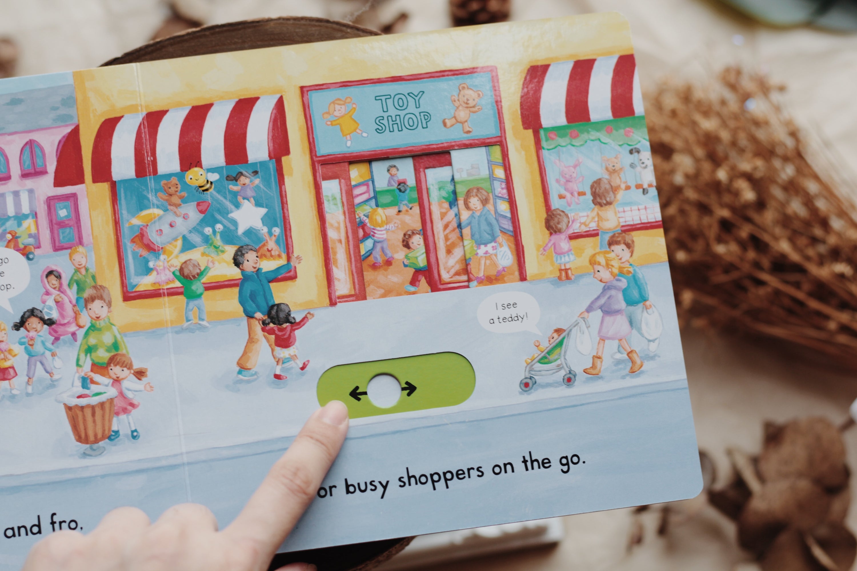 With lots to see and heaps to do, in Busy Town young children really can join in by pushing, pulling and turning the tabs to bring the town to life. Ride on the bus, feed the ducks in the park and do some shopping before heading home to bed.