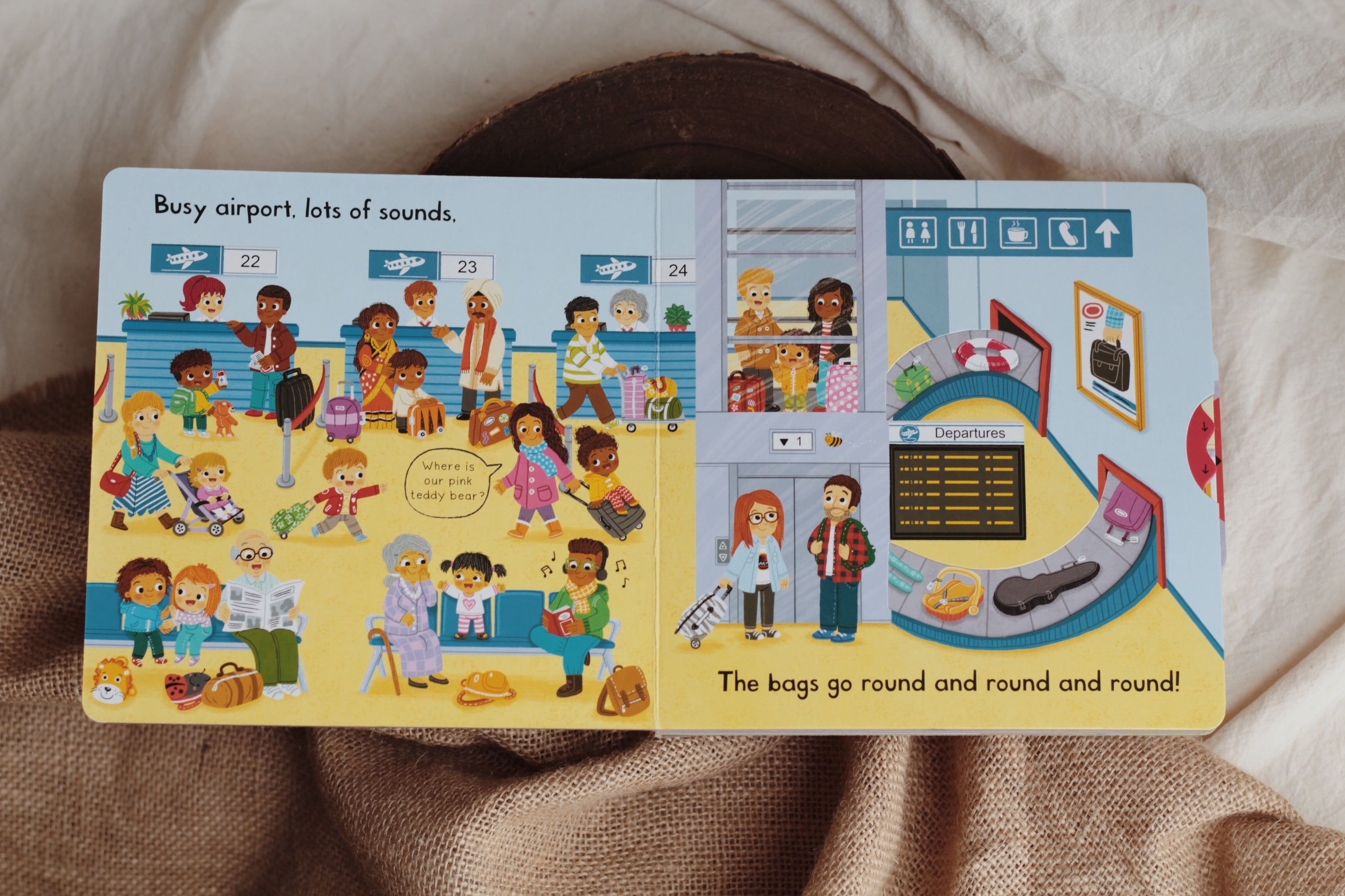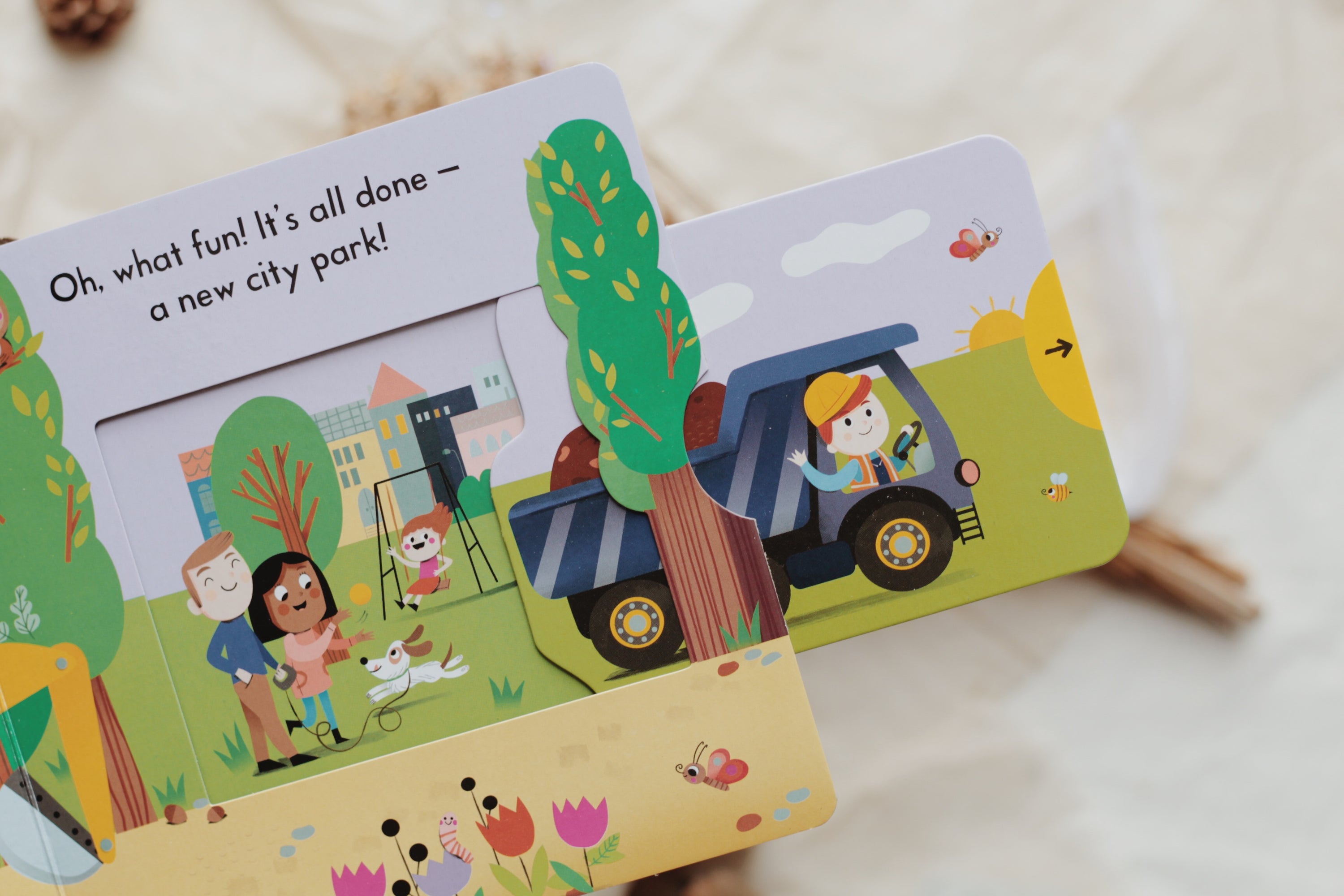 With lots to see and do, in Busy Park young children can join in by pushing, pulling and turning the tabs to experience a day out at the park. Visit the playground, spots lots of different animals and have a picnic.