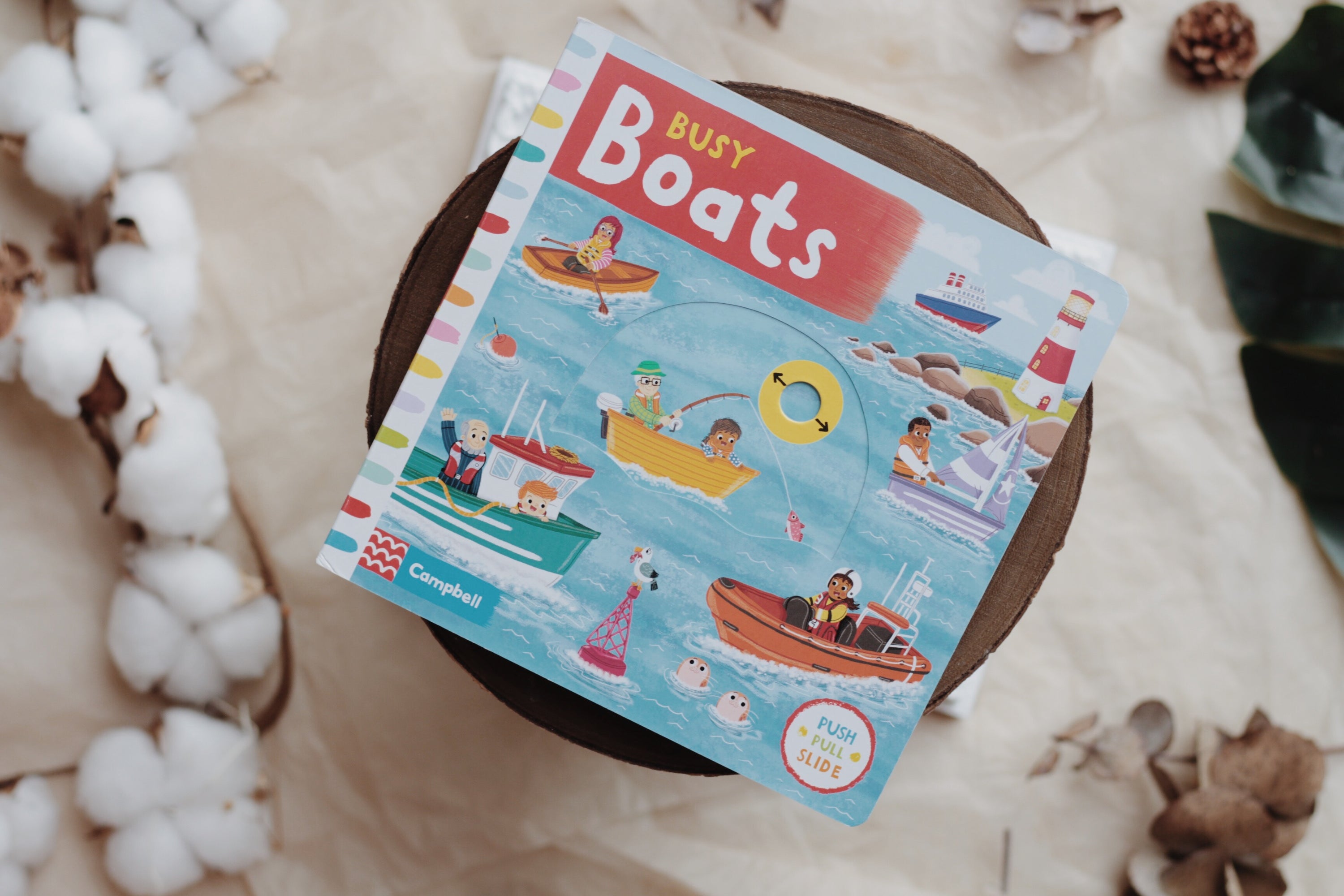 With lots to see in Busy Boats, young children can have fun as they set sail, pulling and turning the tabs! Enjoy hoisting a sail, catching some tasty fish and even working a lighthouse.