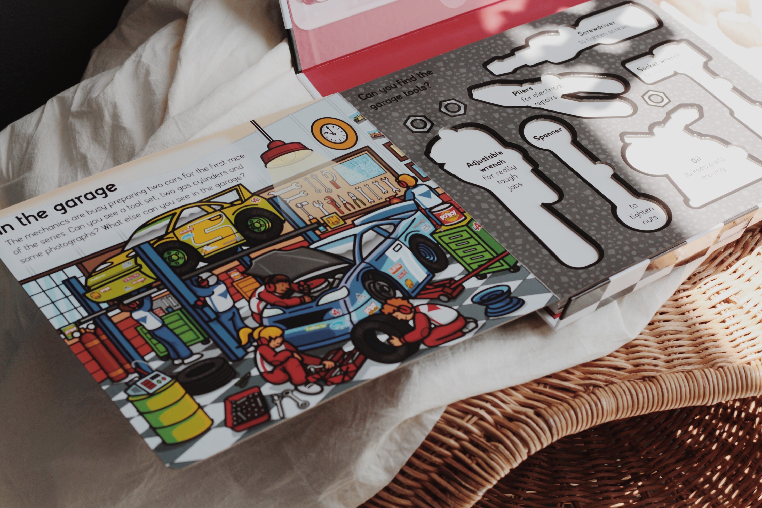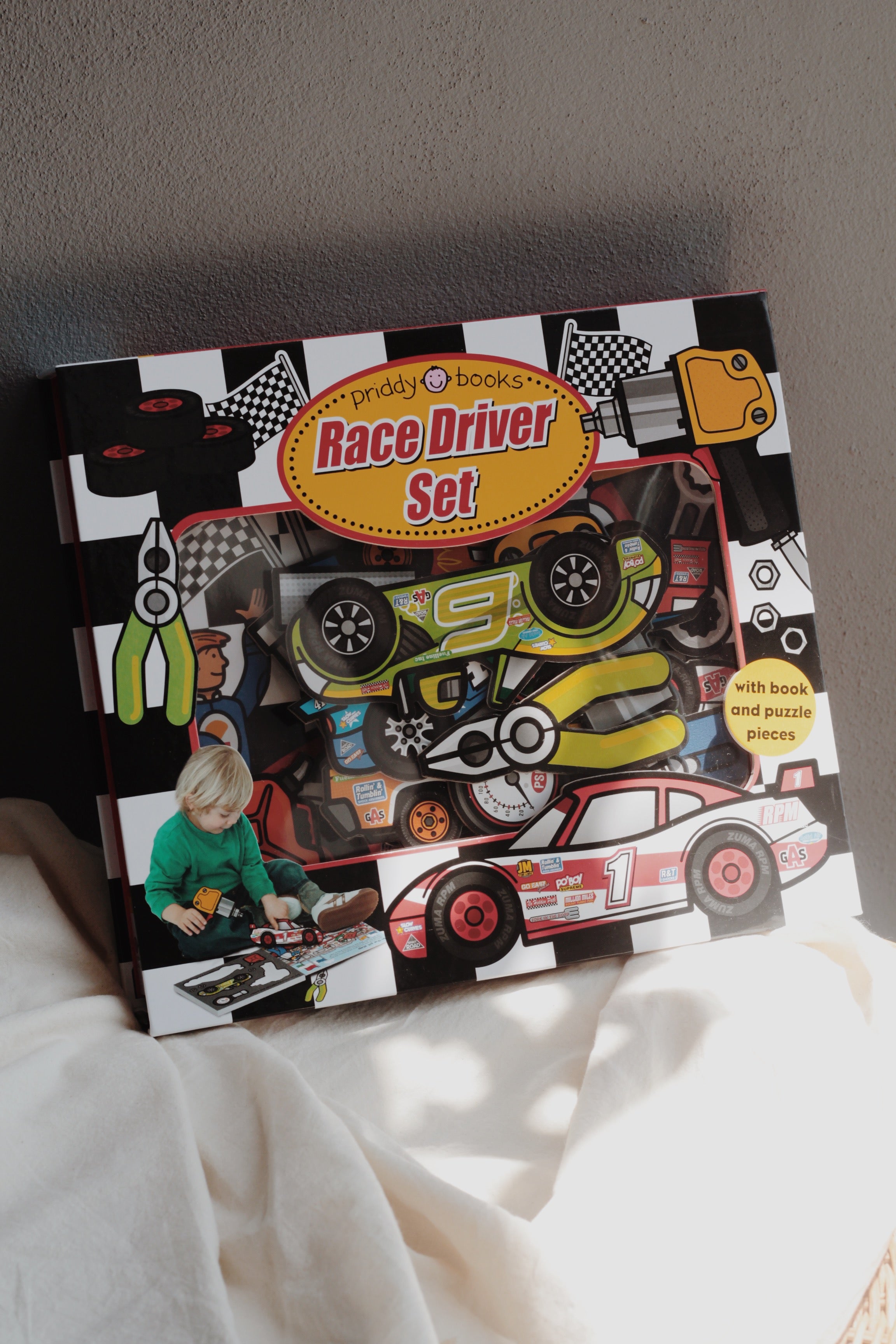 A creative play set perfect for little race drivers. Inside the sturdy board book, there are busy racing scenes packed with lots of things to seek and find. Comes with 15 chunky puzzle pieces to play with and place in the book pages.