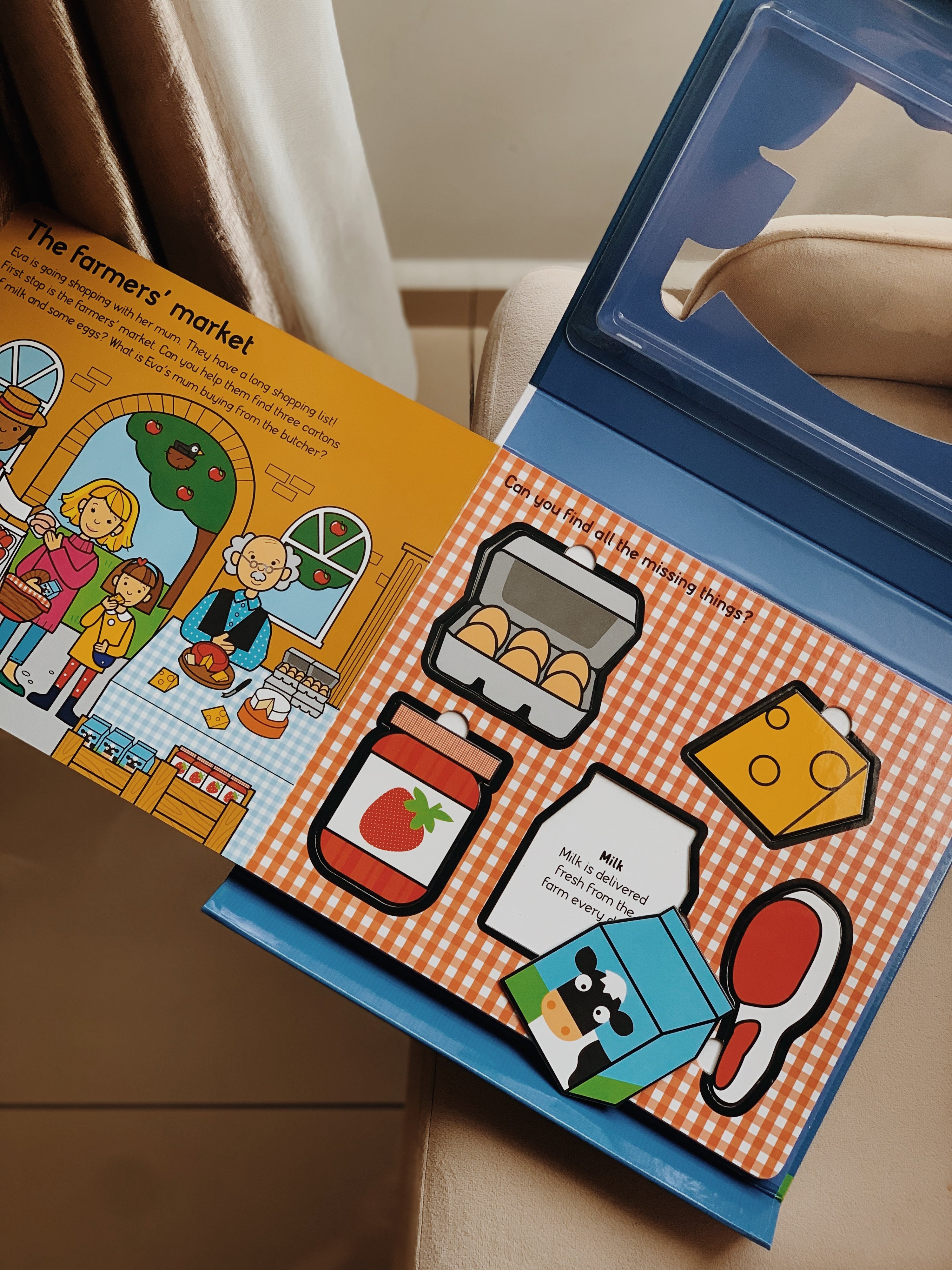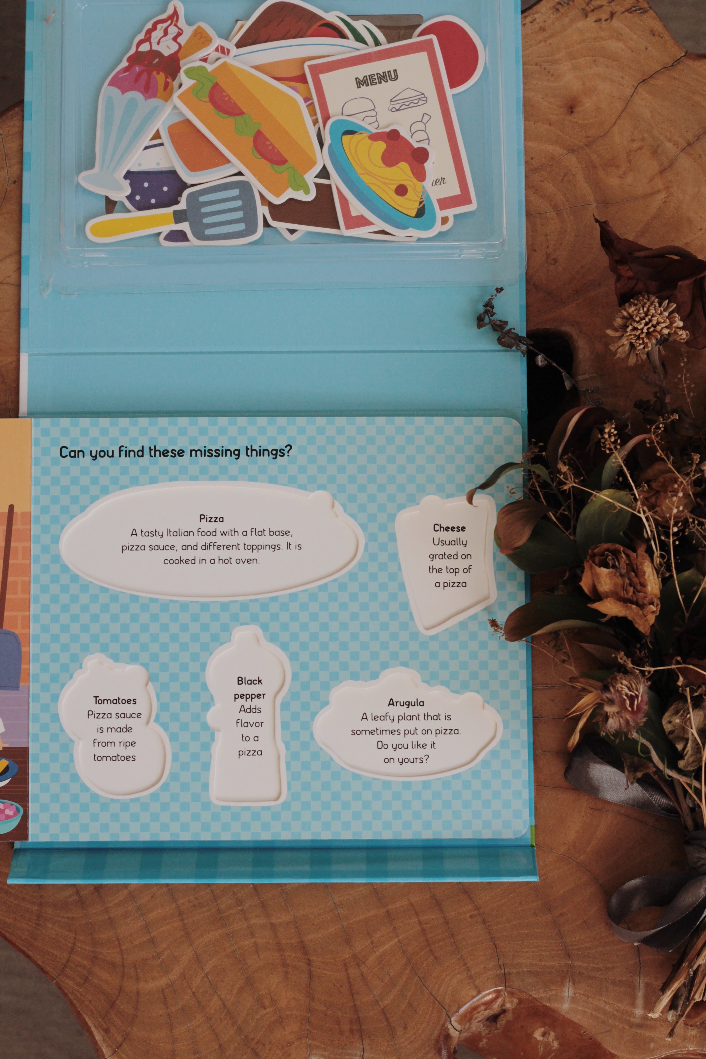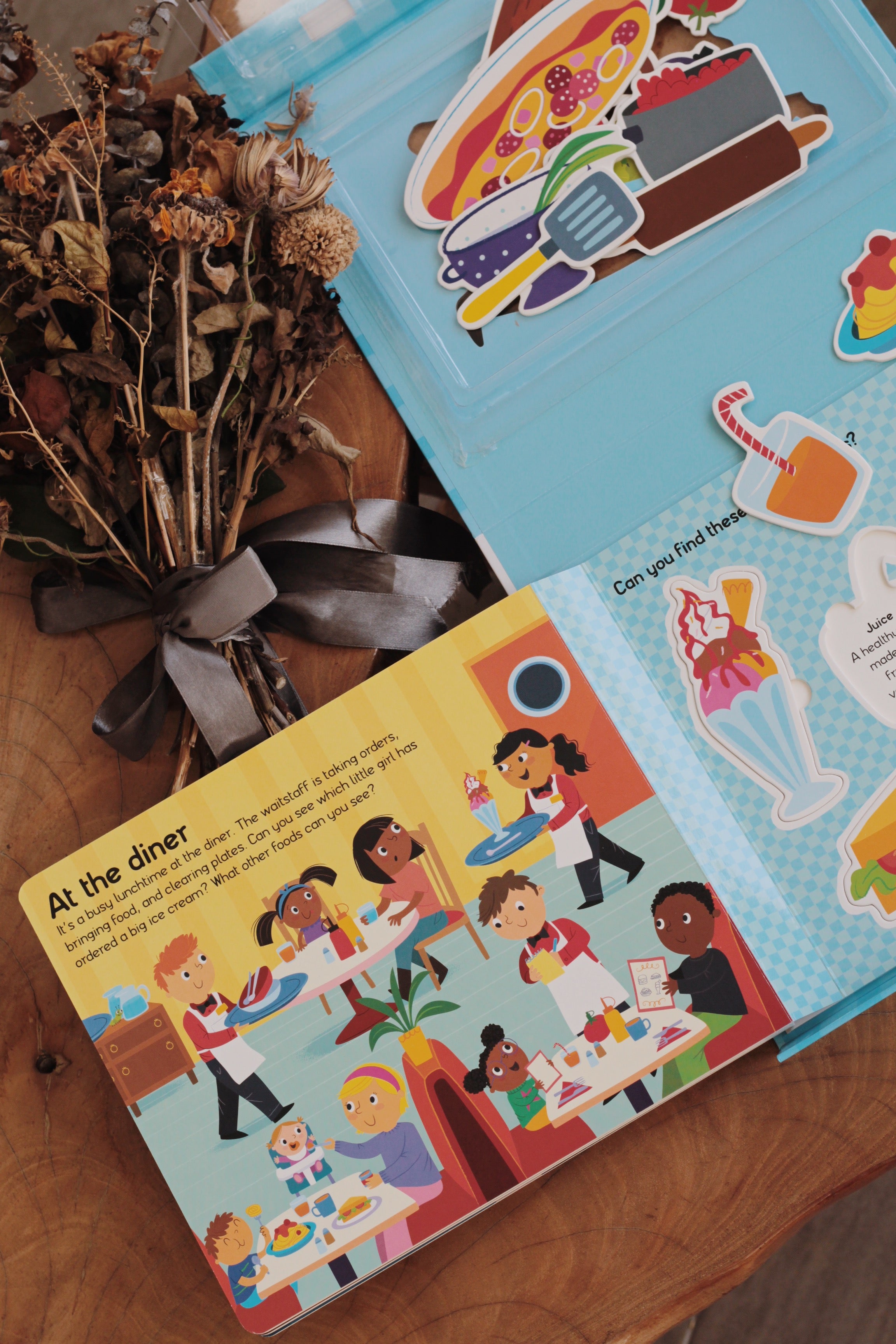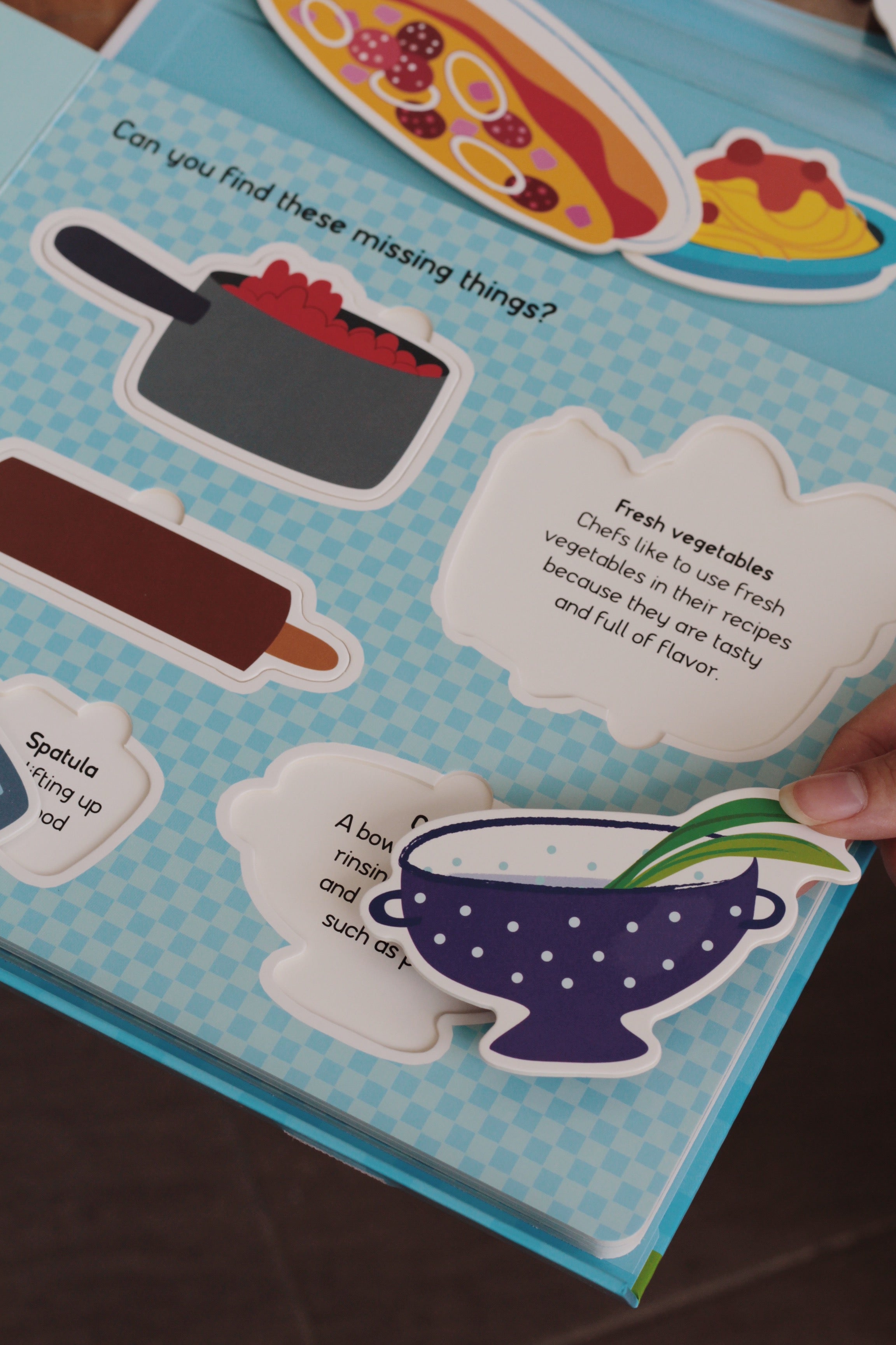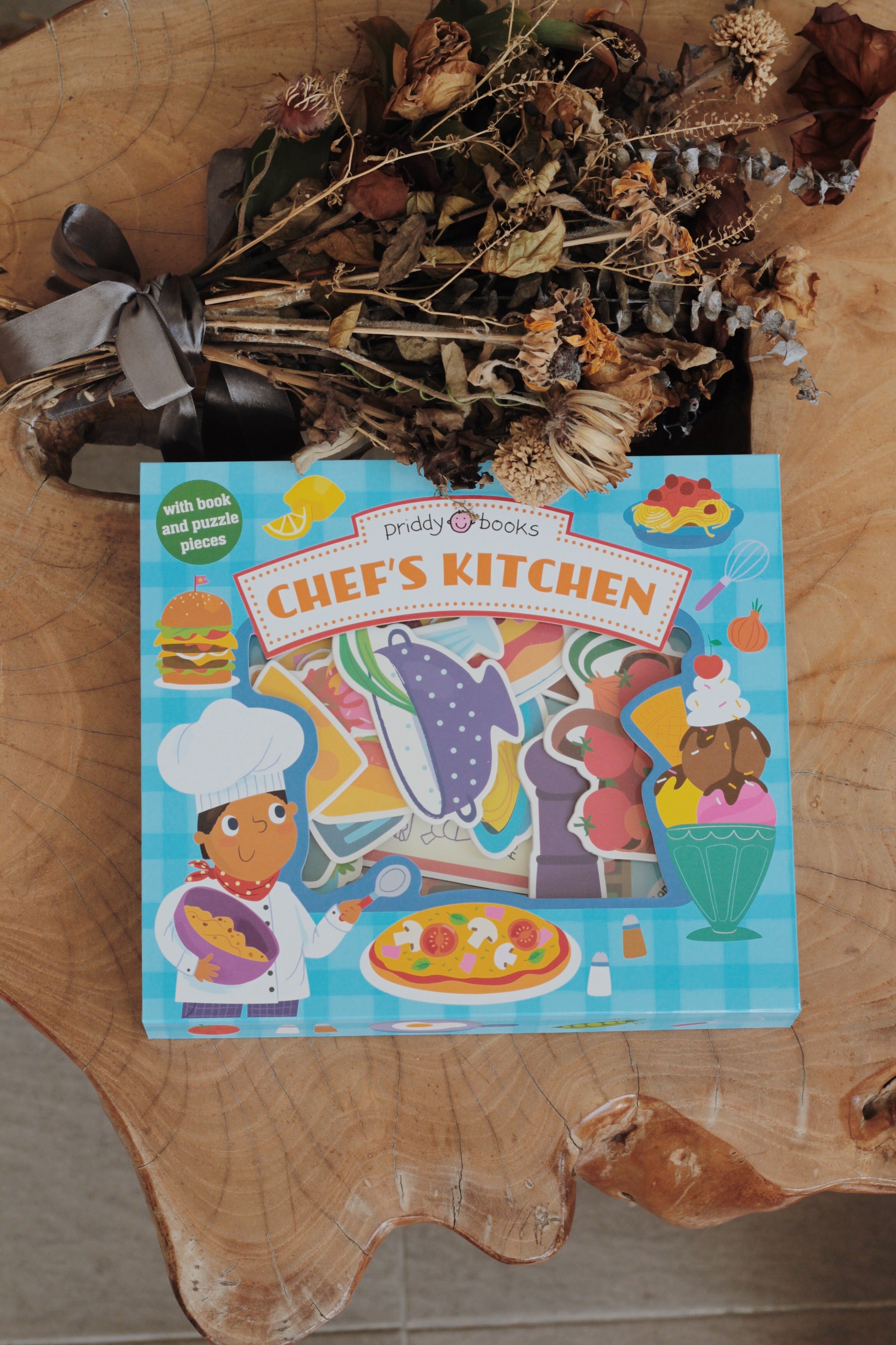 With a saucepan, spatula, pizza base and toppings, children will have fun rustling up a pretend meal, while the illustrated board book shows chefs in the kitchen using utensils and making meals, with fun things to find. There's information, too, about what each utensil or food stuff can be used for.