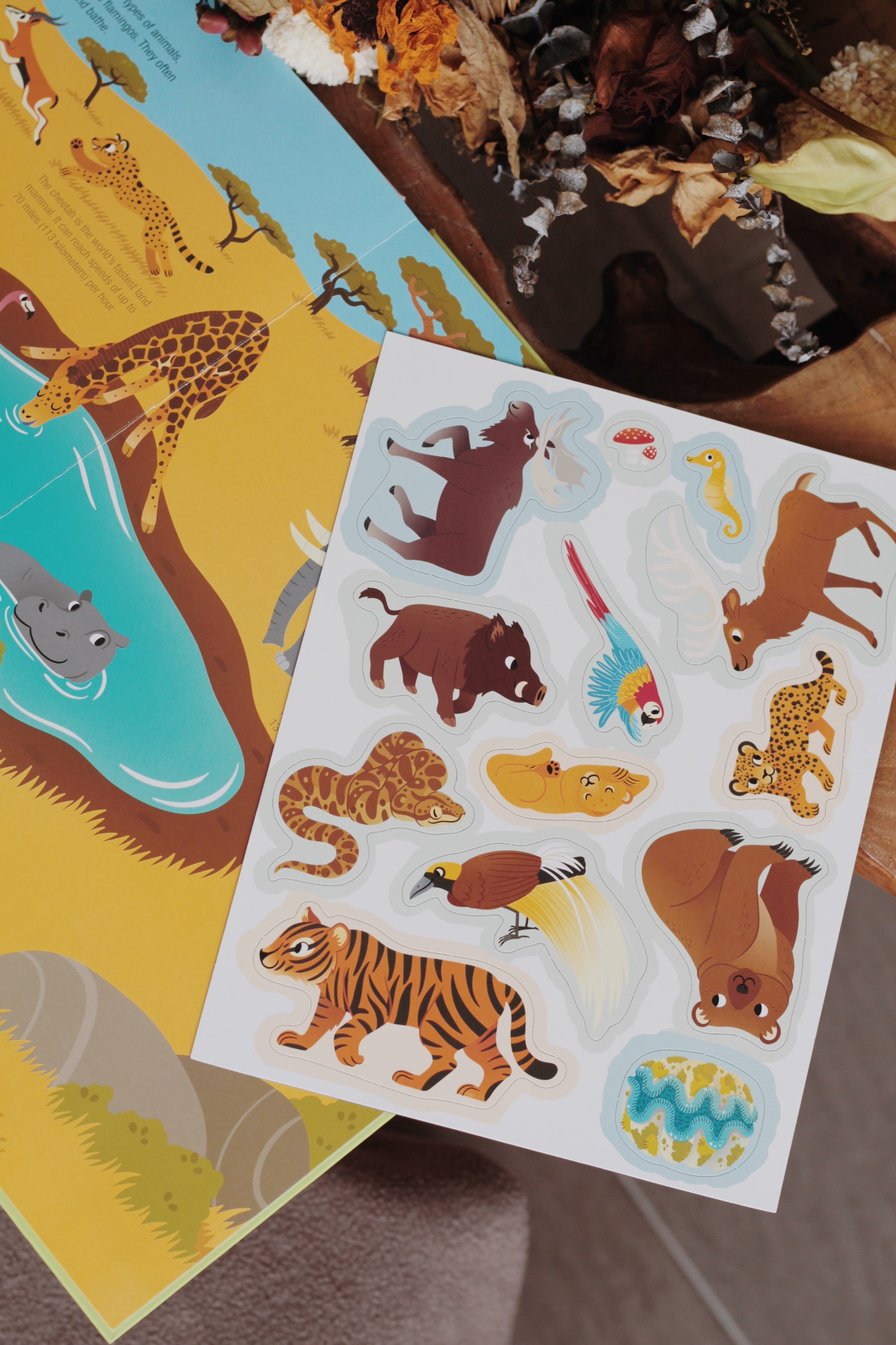 Forty-five magnetic pieces featuring all kinds of animals - including penguins, elephants, giraffes, fish, and birds - provide kids with hours of fun as they fill the five dramatic oversize scenes in this engaging playset. An all-in-one-package with exceptional play value, the book has magnetized pages and fascinating tidbits of information, just right for its audience, about the animals that live in the rain forest, savanna, coral reef, and ice sheets.