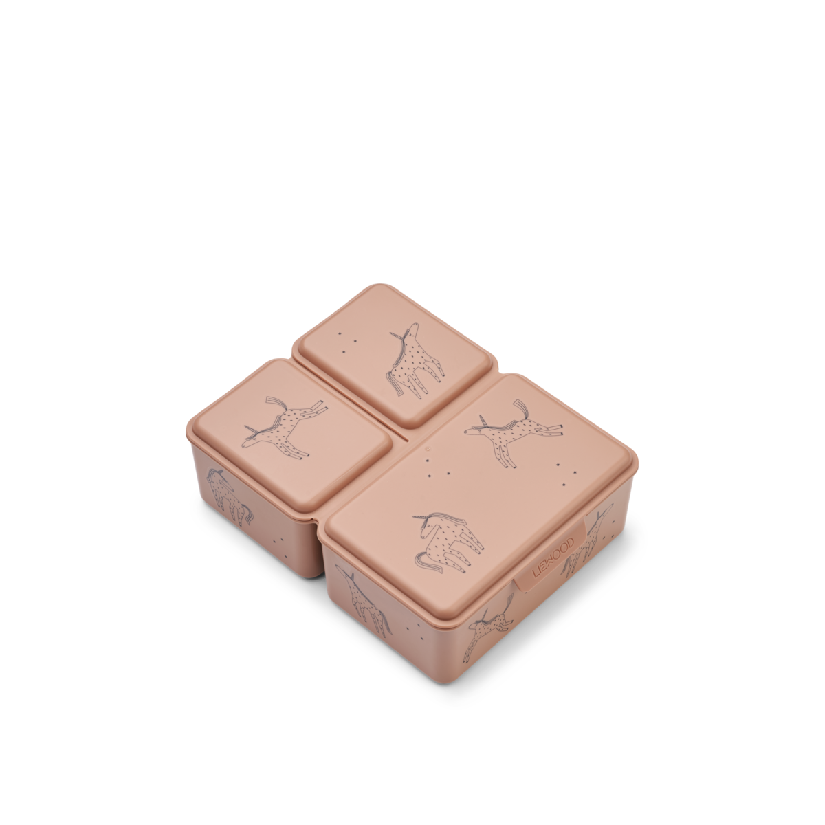 A fun and functional companion for children's meals on the go, the Driss lunch box is partially crafted from recycled PET and features three smart compartments in both the lid and bottom, allowing for organized and versatile meal options. Each section can be opened separately, making it convenient for both parents and playful little ones.