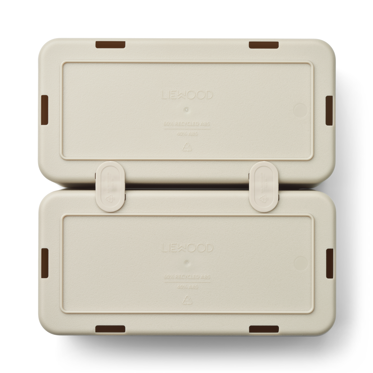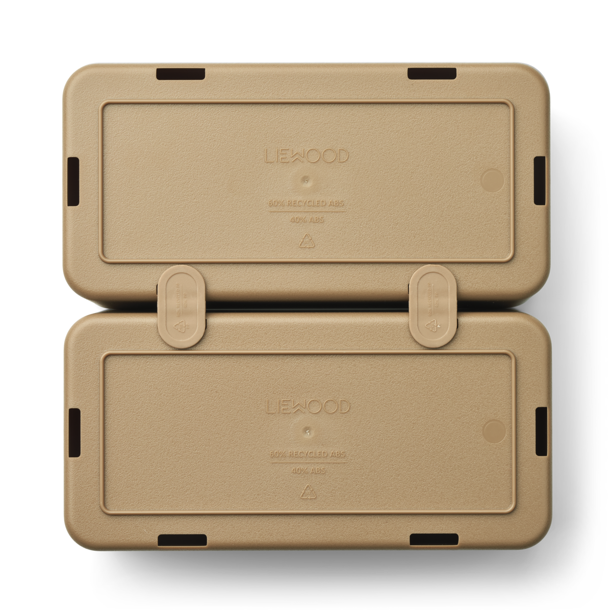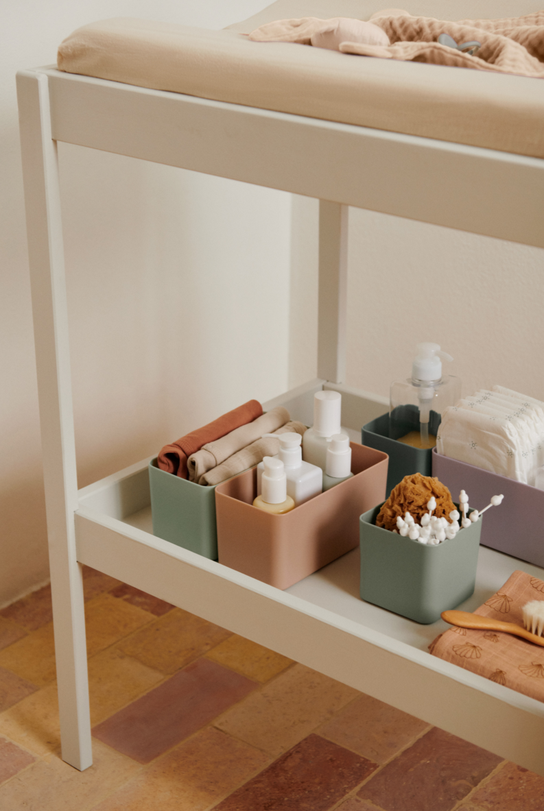 Cool and connected, the multipurpose Jamal Storage System is your easy and versatile storage for desktop, nursery and much more. Consciously made from 60% recycled plastic, the boxes can be gathered using the included clips to keep them from sliding apart. Mix and match from the broad color range and different sizes.
