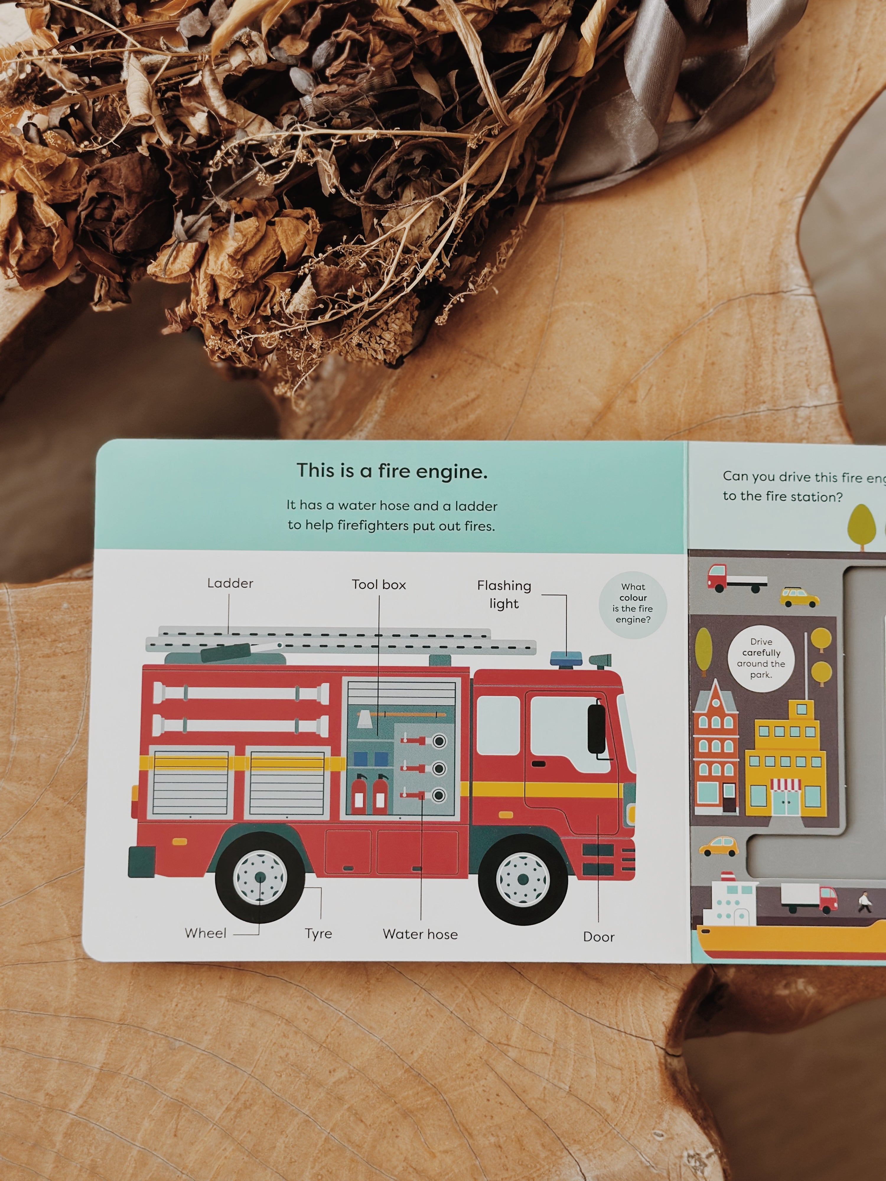 Discover different emergency vehicles in this series of interactive board books with easy-to-use moving parts. The perfect book for children who love fire engines and police cars and being in the driving seat!