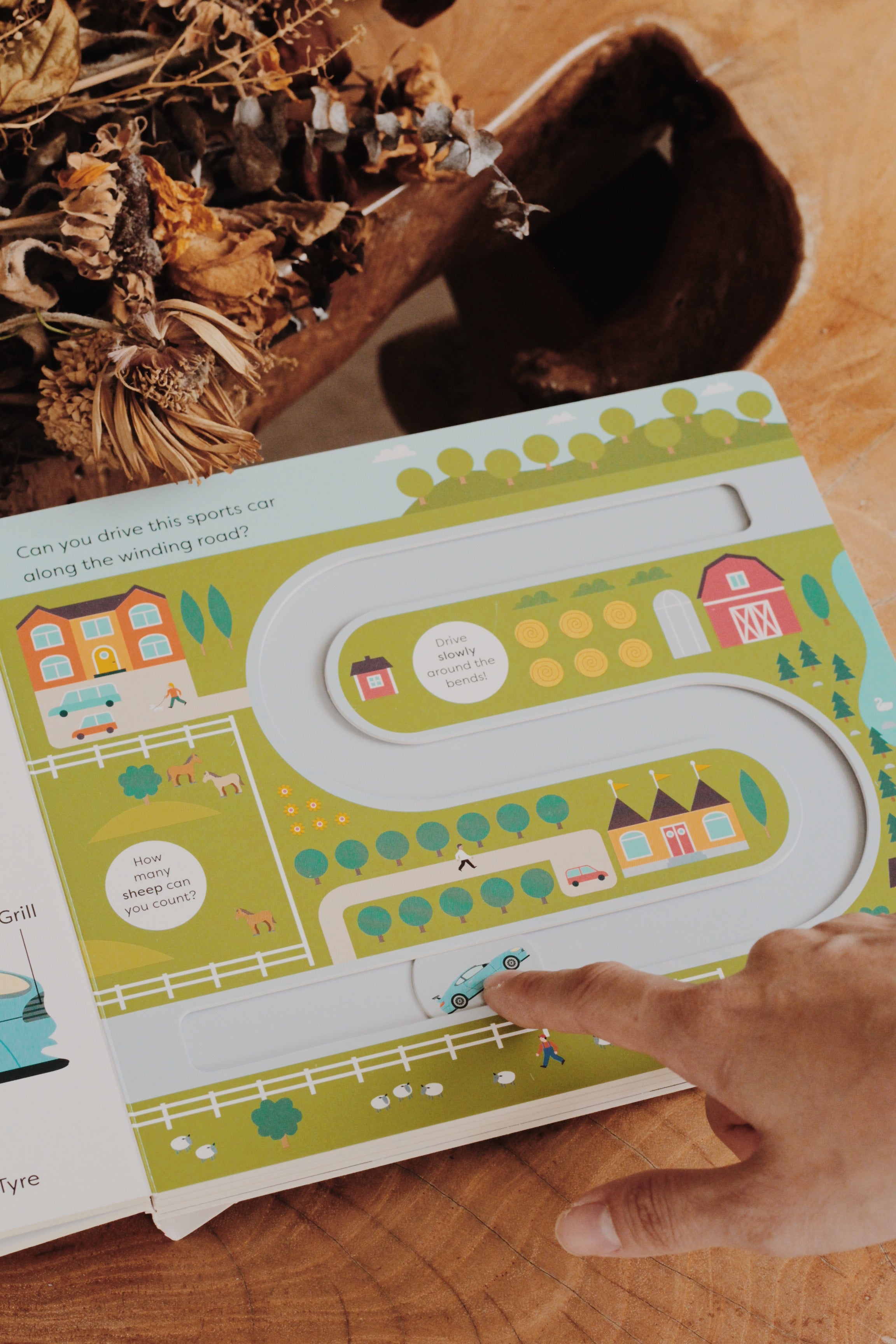 Discover five different cars in this series of interactive board books with easy-to-use moving parts - a car, a sports car, a racecar, a four-wheel drive and a taxi!