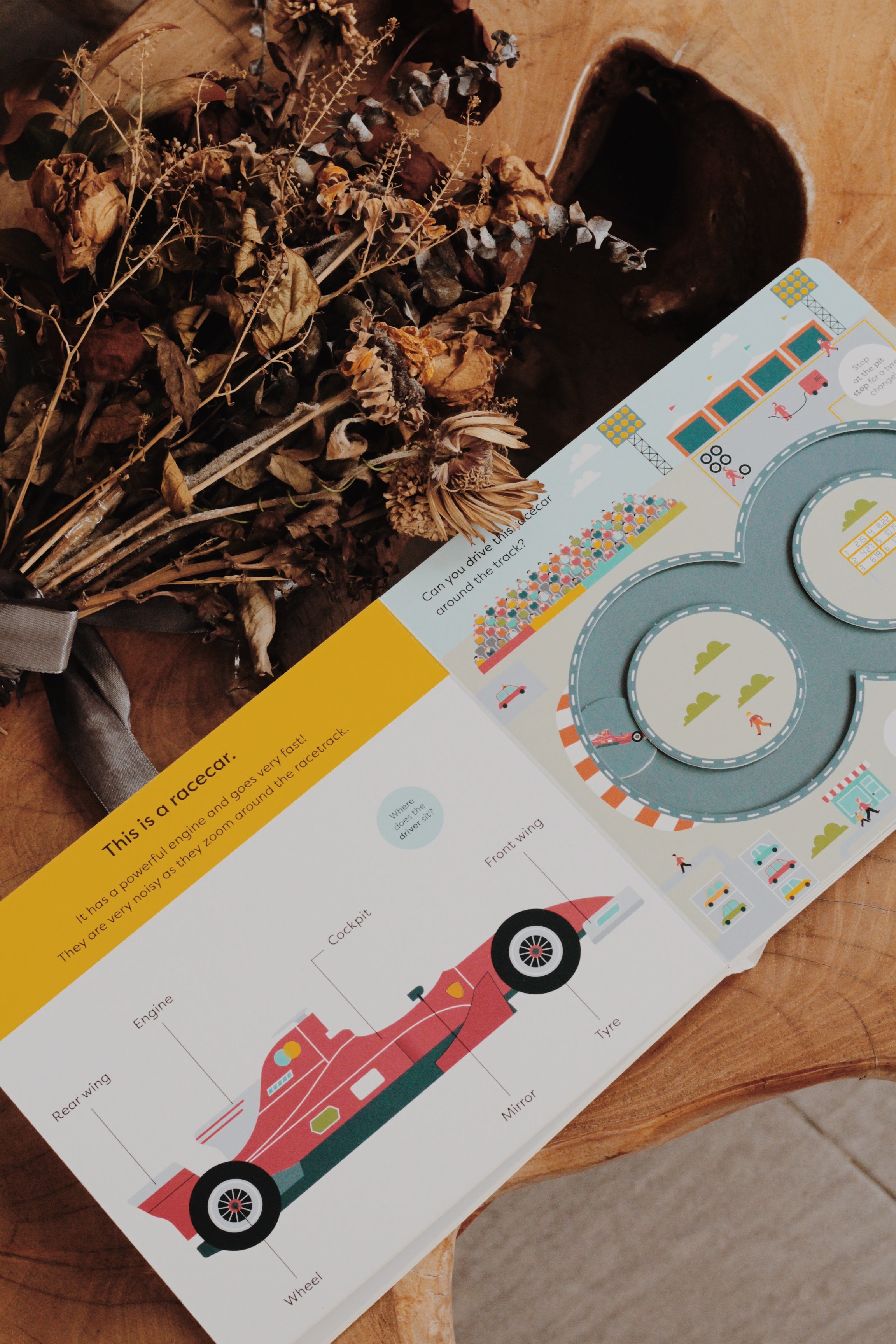 Learn vehicle vocabulary with simple first words, clear diagrams and helpful text prompts to encourage discussion. Then trace 5 types of transport around 5 different tracks with a moving counter on every spread and the cover. The perfect book for children who love racecars - and being in the driving seat!