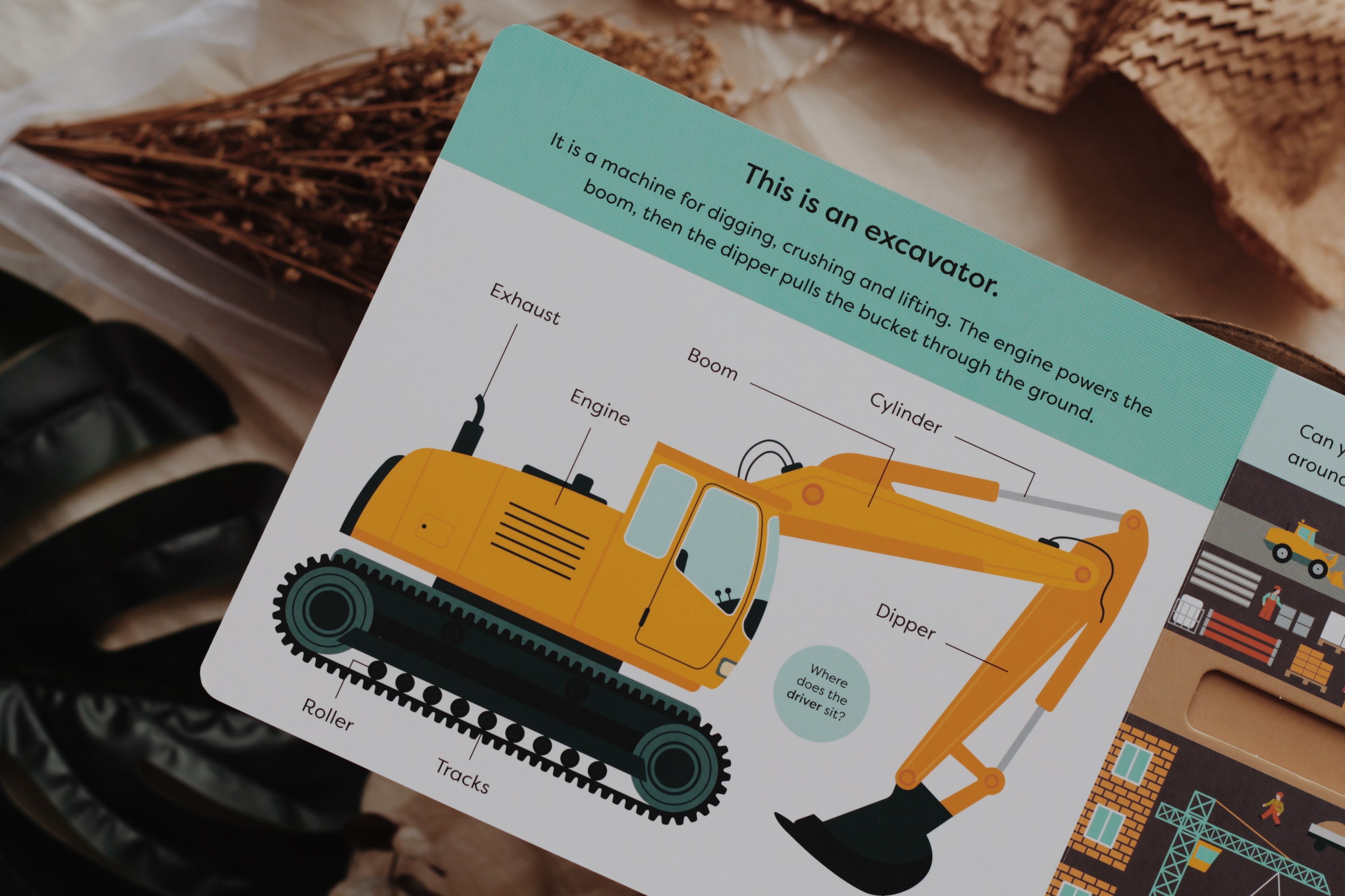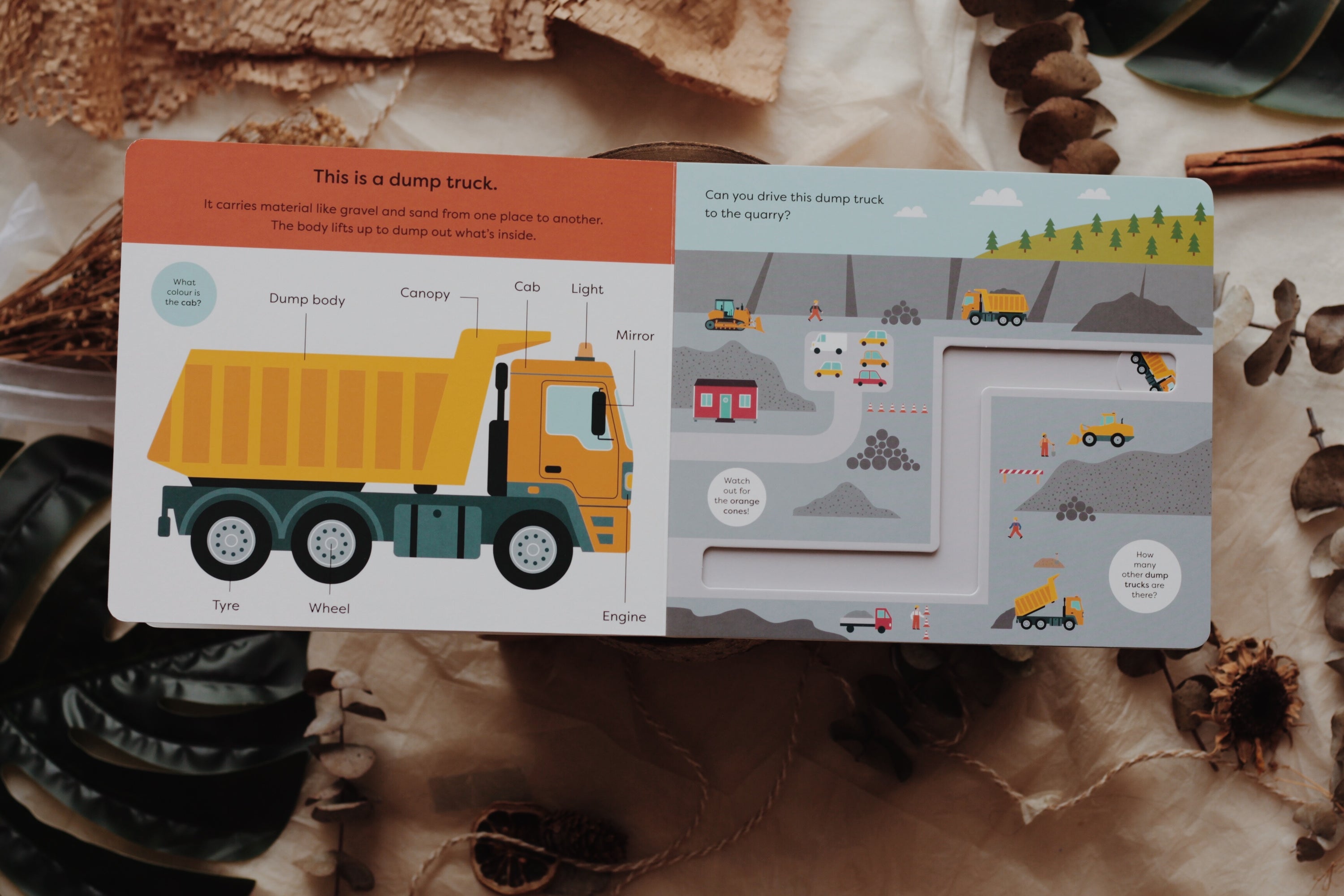 Learn vehicle vocabulary with simple first words, clear diagrams and helpful text prompts to encourage discussion. Then trace 5 types of transport around 5 different tracks with a moving counter on every spread and the cover. The perfect book for children who love diggers and dump trucks - and being in the driving seat!