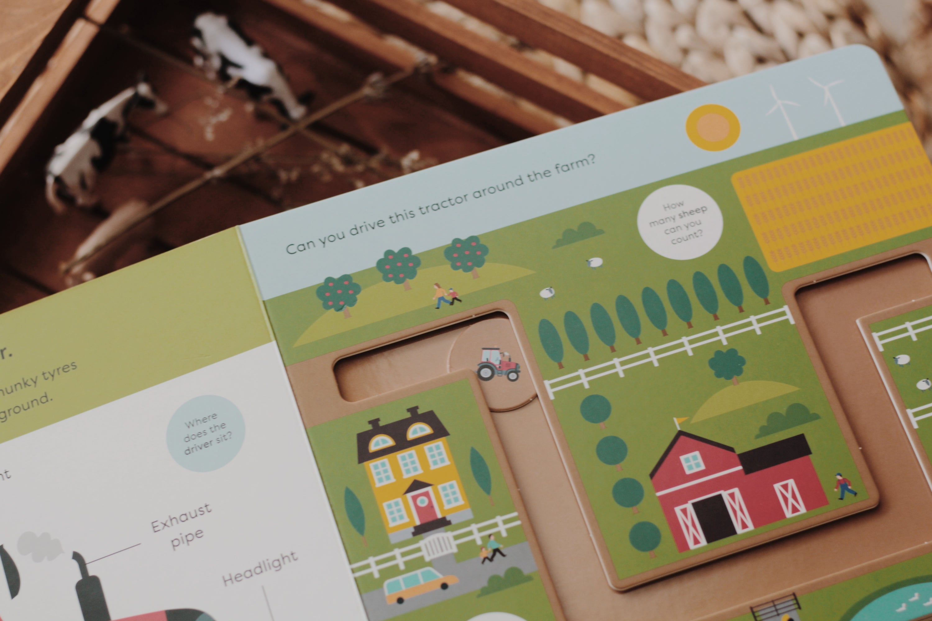 Learn vehicle vocabulary with simple first words, clear diagrams and helpful text prompts to encourage discussion. Then trace 5 types of transport around 5 different tracks with a moving counter on every spread and the cover. The perfect book for children who love tractors and combine harvesters - and being in the driving seat!