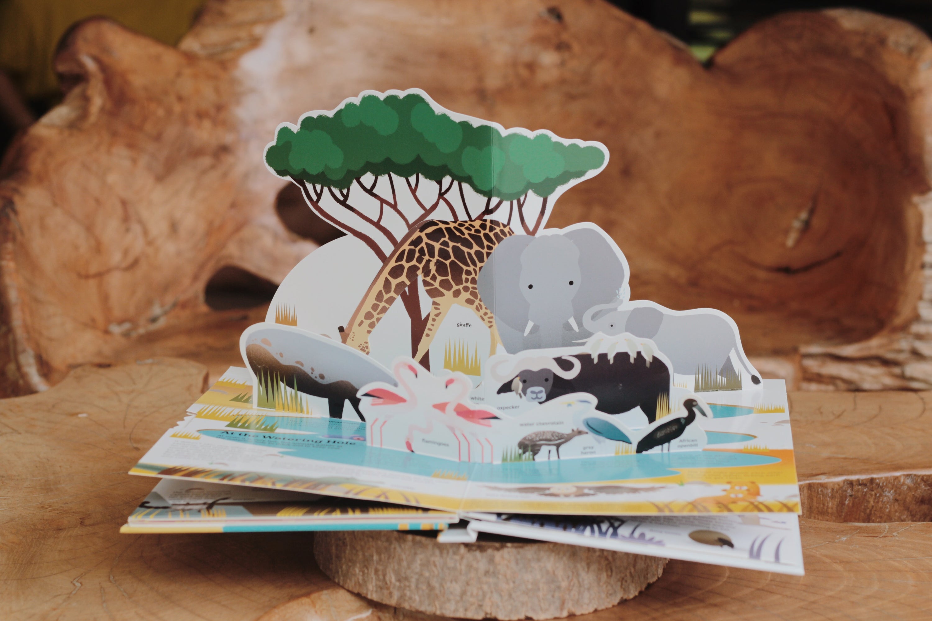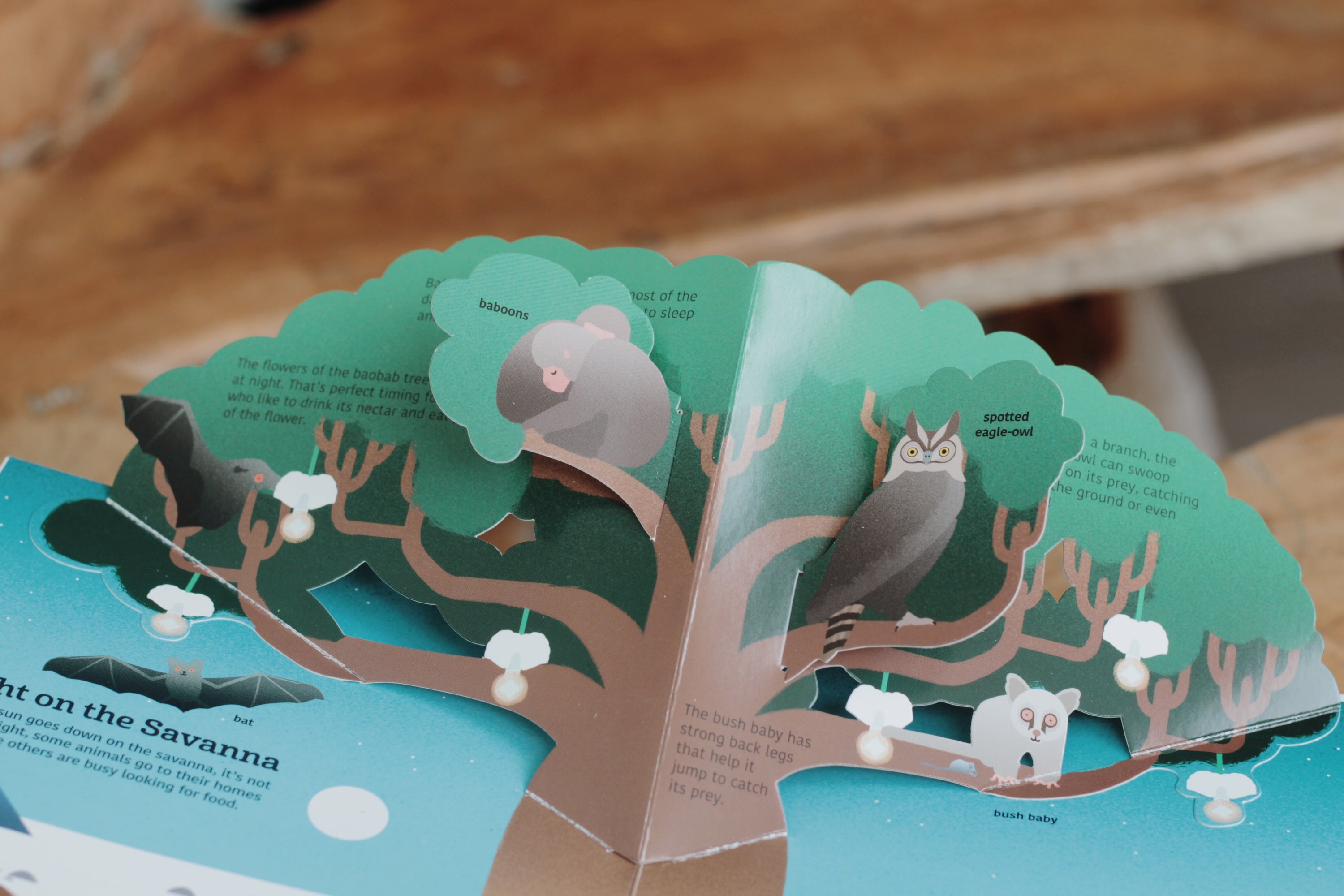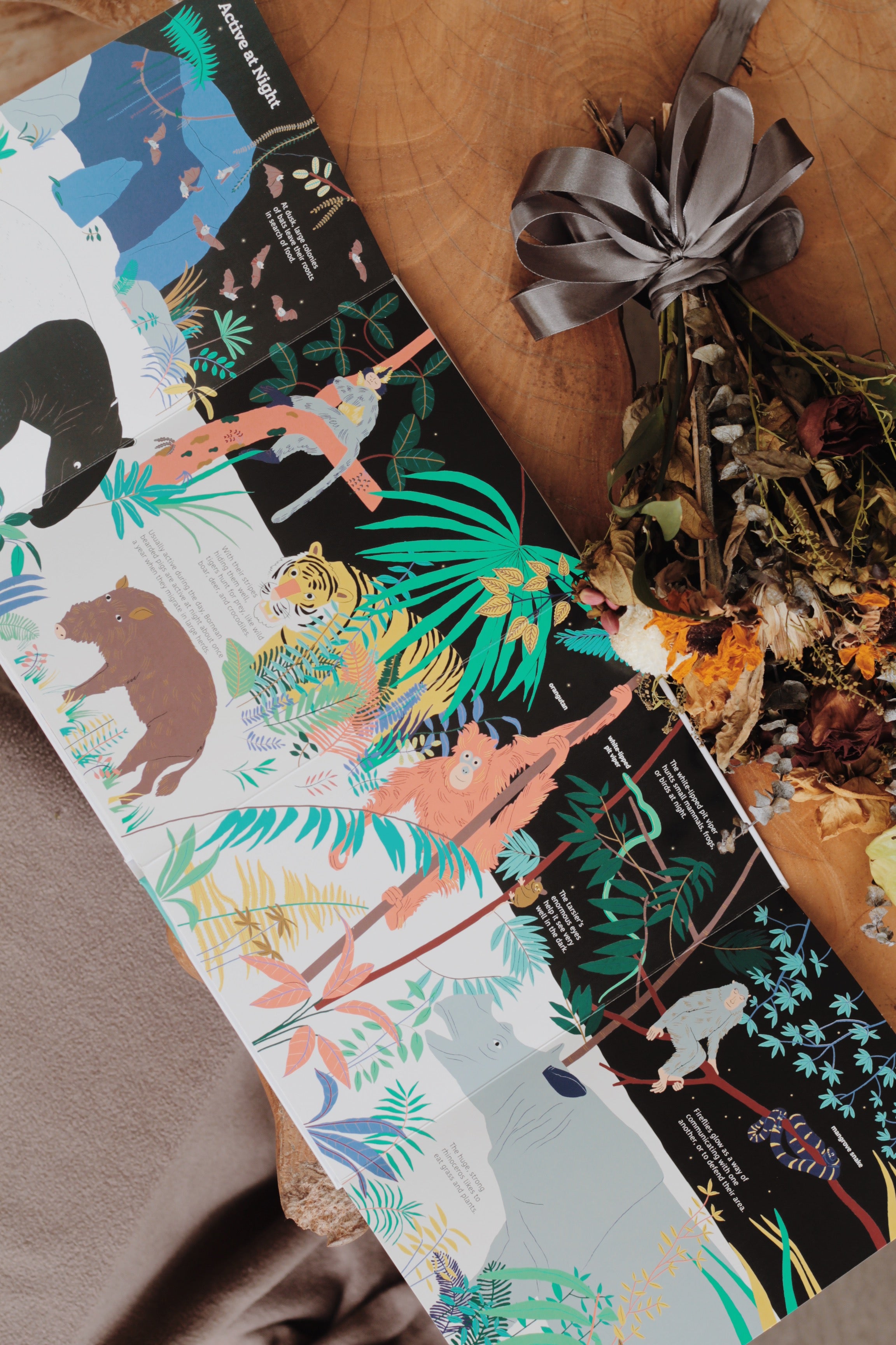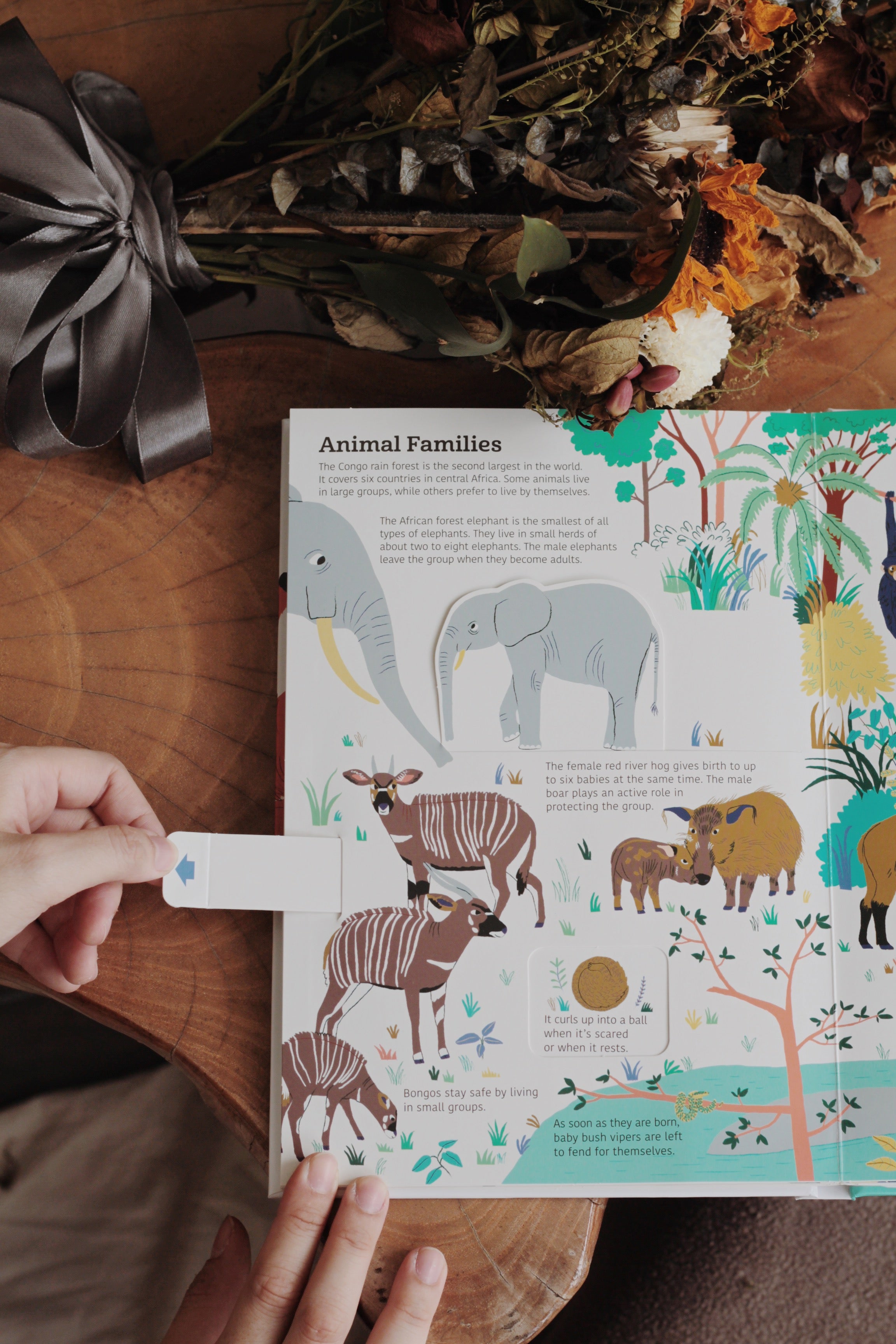 forest, rotate the wheel to see bonobos at play, and open big flaps to