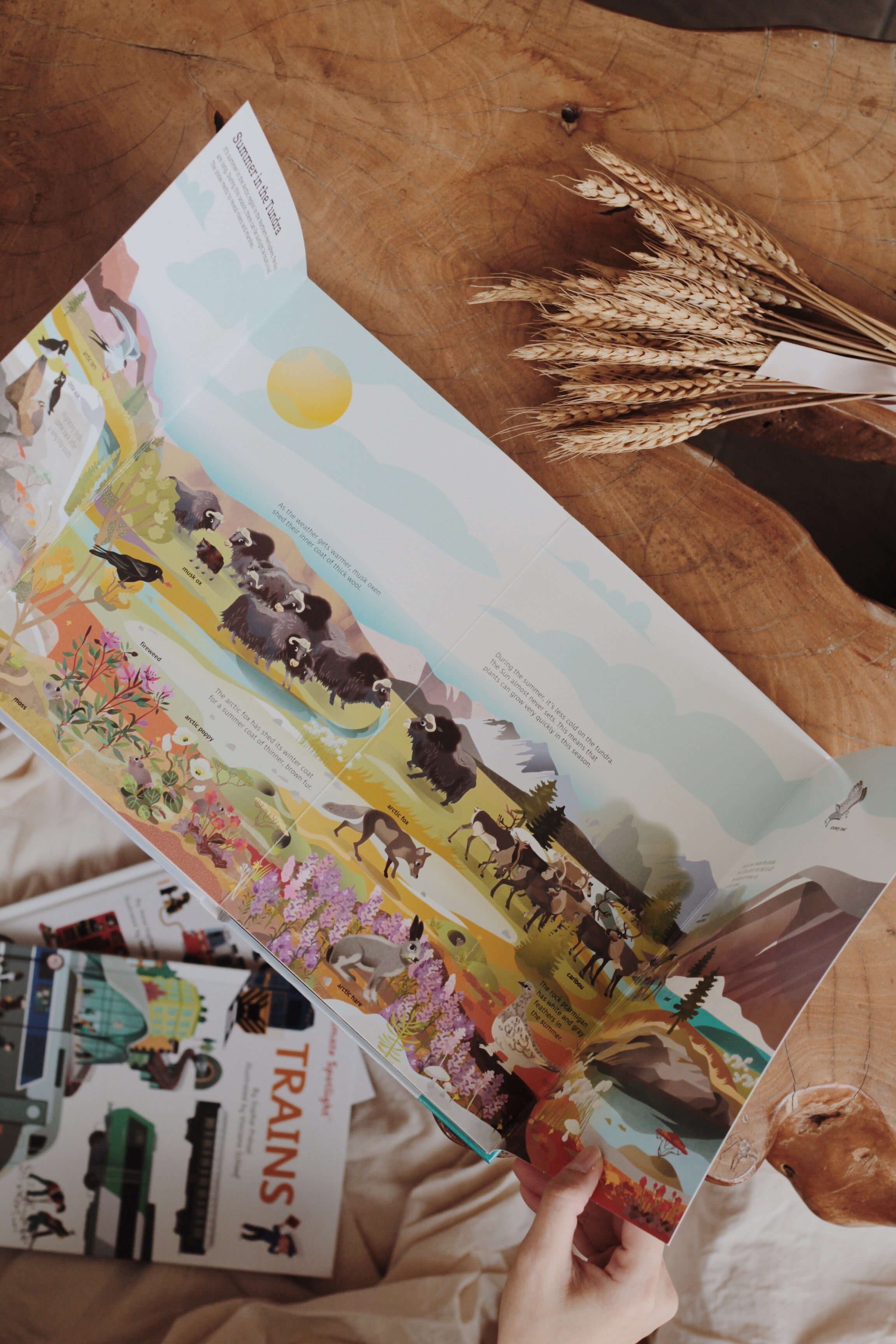 Polar bears, penguins, Arctic foxes, seals, and many more polar animals withstand the extreme weather conditions in the Arctic Circle and Antarctica. Turn the wheel so penguins can dive into the water, pull the tab to see water spouting out from the blowhole of a whale, and open the big flaps to discover what the creatures look like in summer, the shortest season in the polar regions. A terrific addition to the Ultimate SpotlightTM collection!
