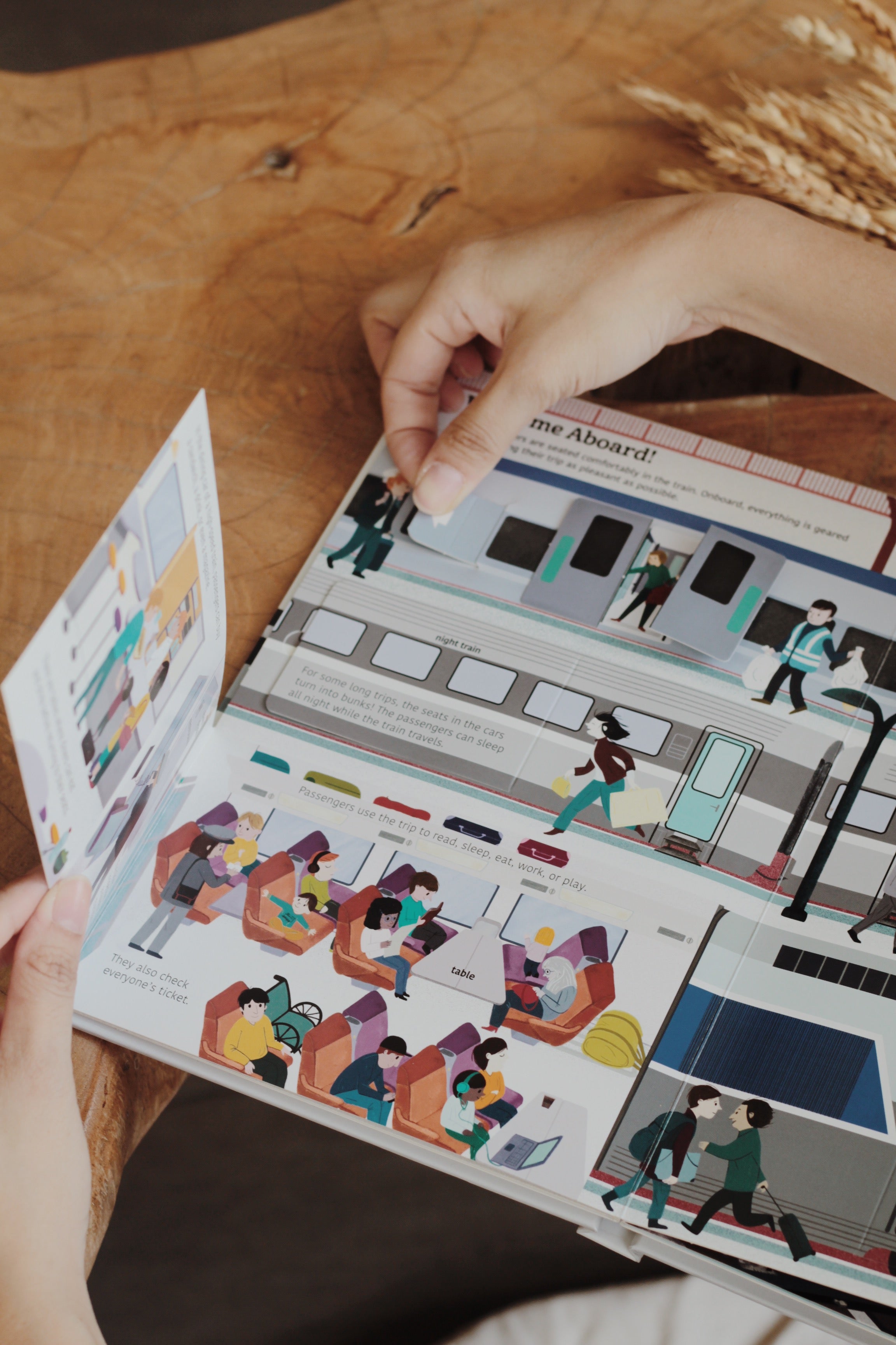 All aboard! Chock-full of fascinating facts, Ultimate SpotlightTM Trains offers young readers a closer look into the marvelous world of trains: the different types of trains throughout history, how railroad tracks are built, things you will find at a train station-and much more! With interactive elements on every spread, this book is an endlessly engaging hands-on learning experience for train fans!