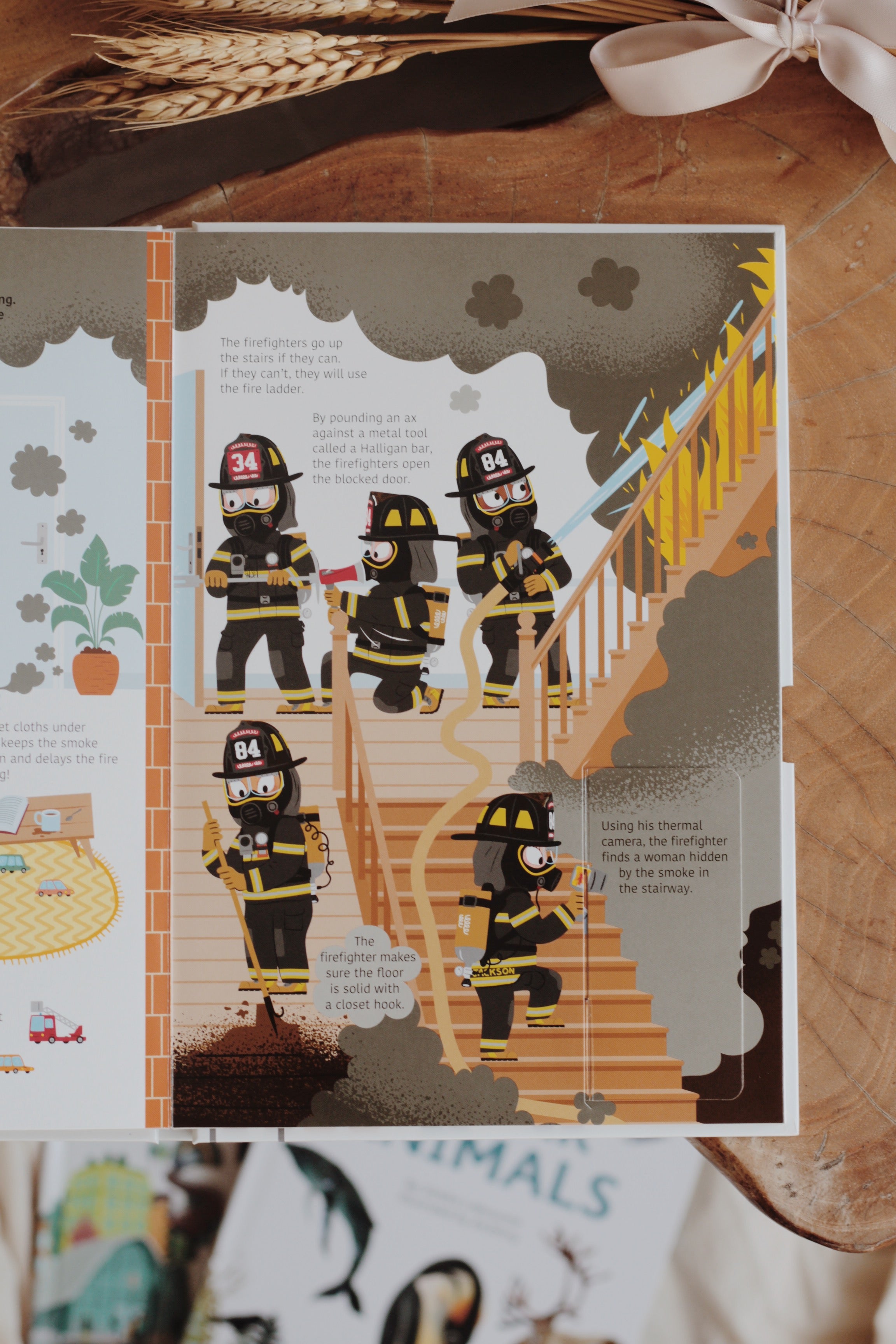 Flaps, pull tabs, and many other movable parts show young children just what firefighters do all day! From putting out fires to taking care of the fire trucks and rescuing people, firefighters in the city are kept very busy. Chock-full of age appropriate information, this book is an exciting introduction to the world of firefighters.