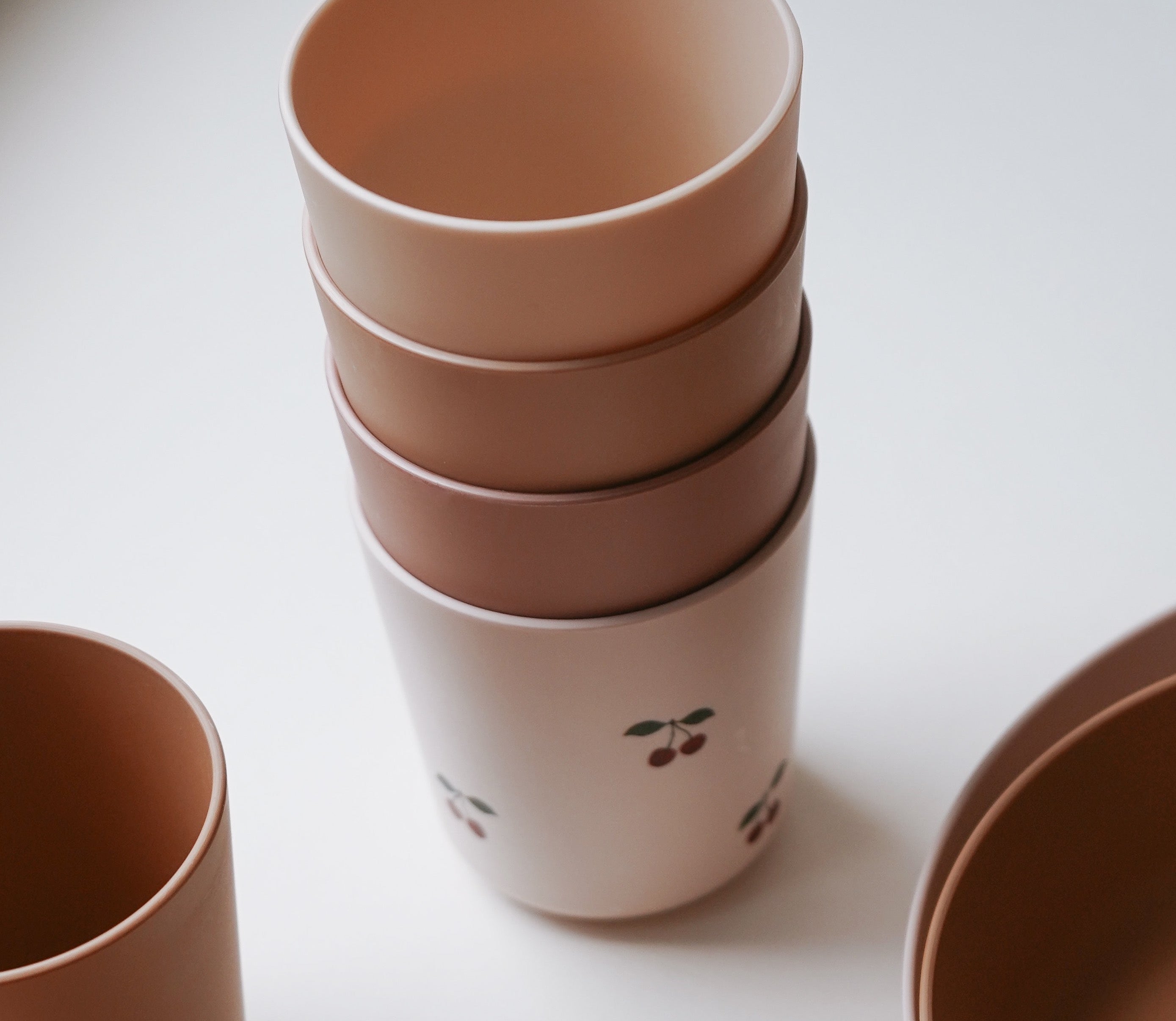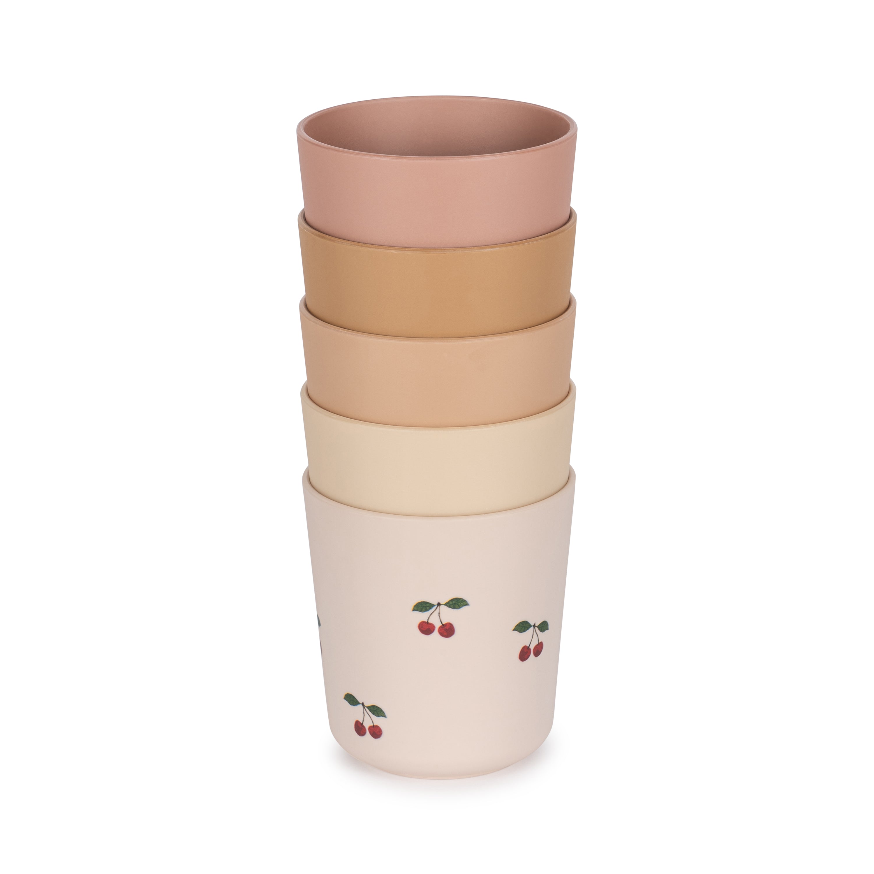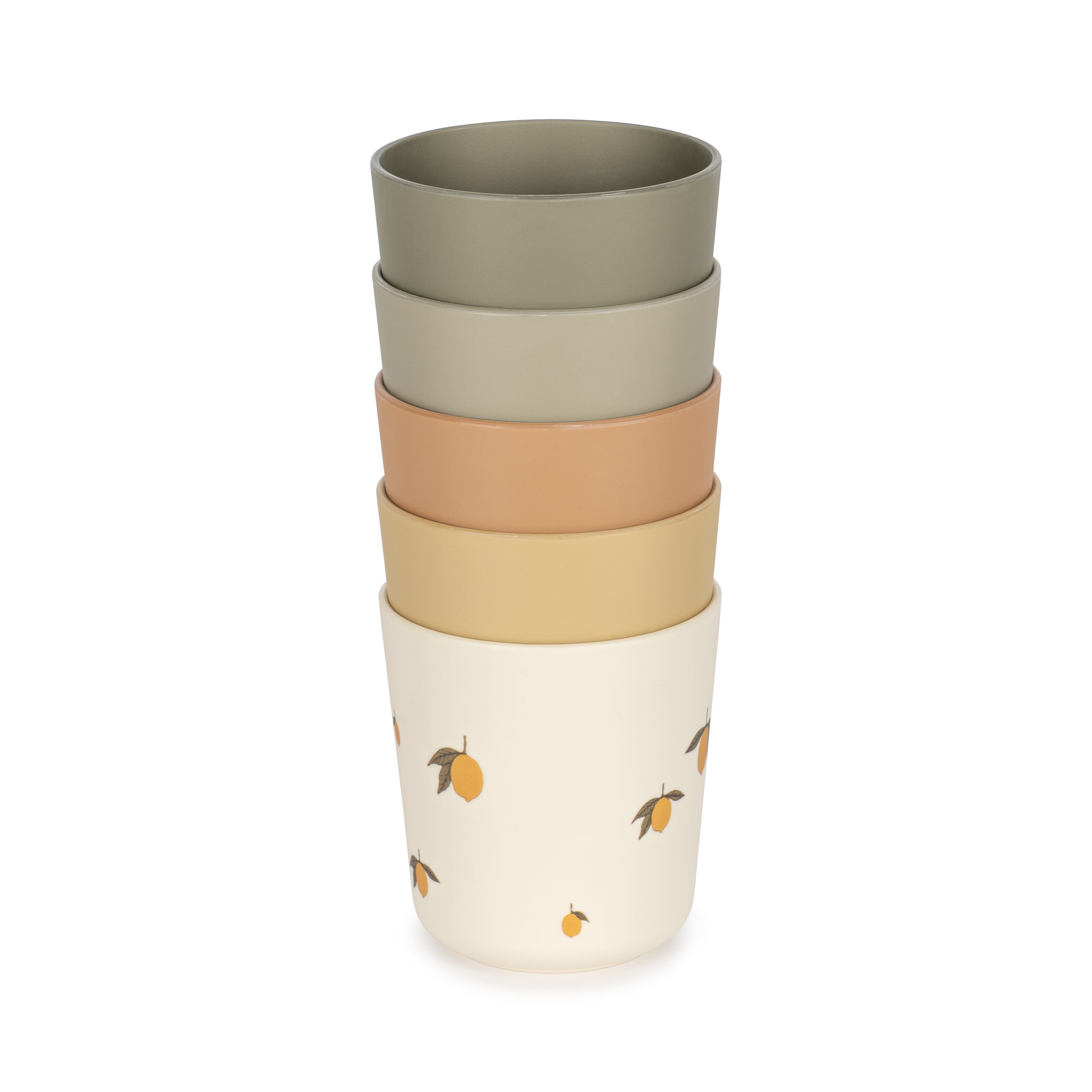 A set of five PLA (bioplastic) cups with 2 types of print.