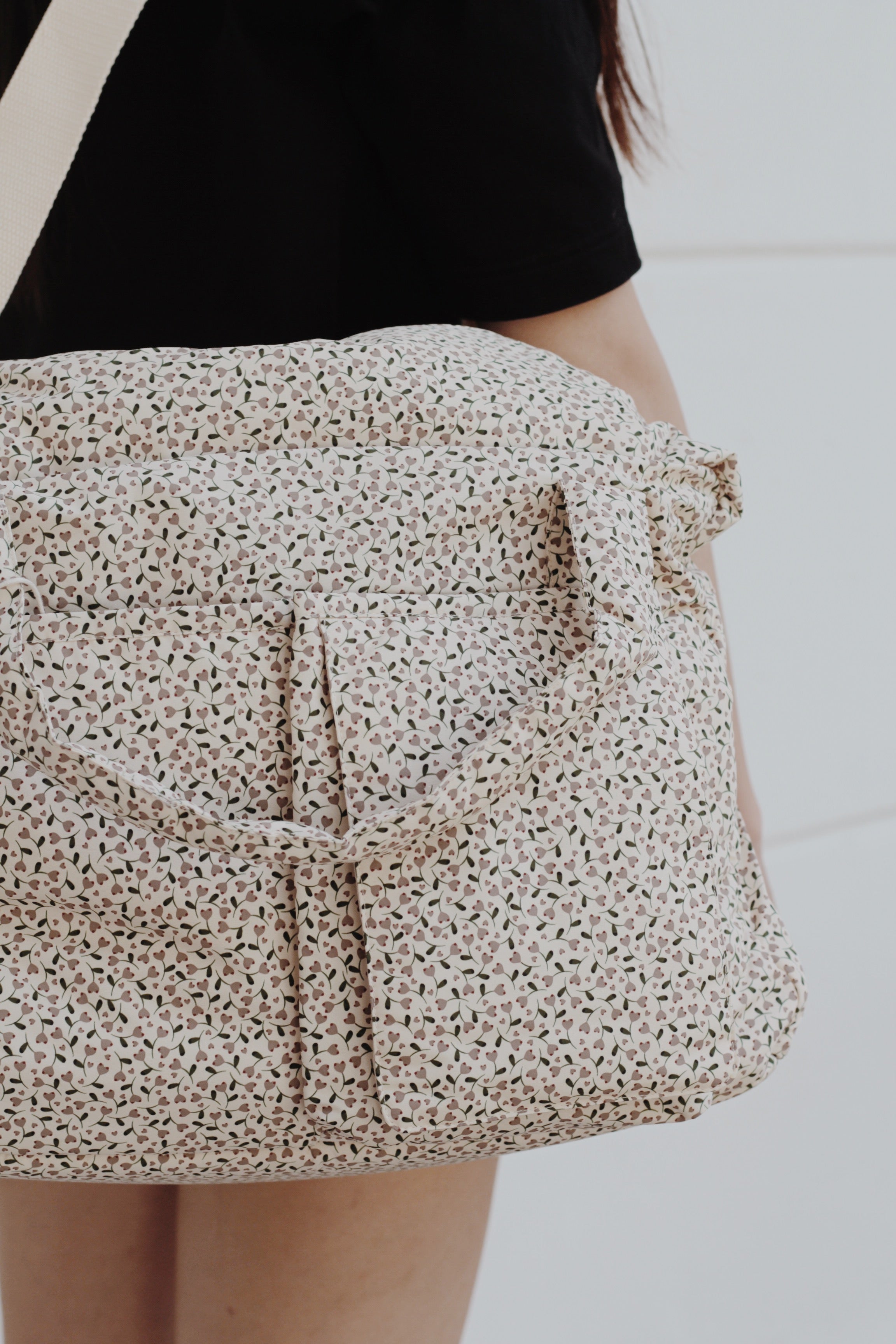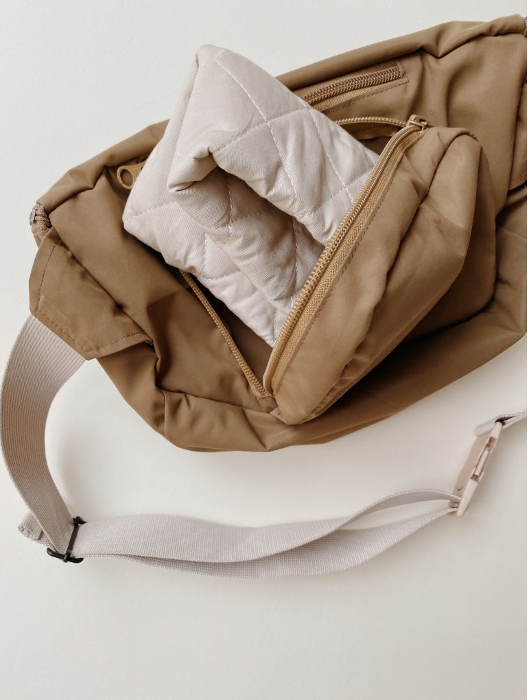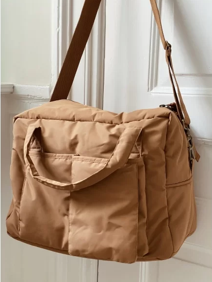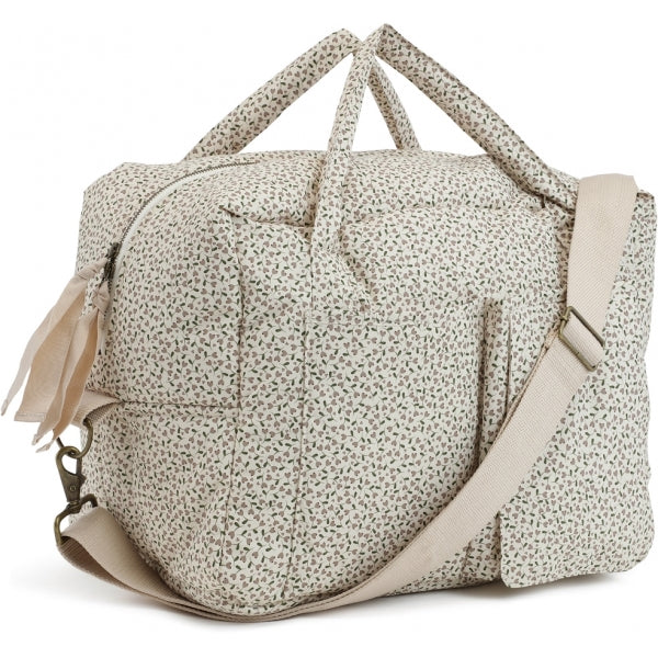 Waterproof and functional changing bag. Make storing and organising essentials simple. The bag has a large storage capacity and can also be used as a weekend bag and as well as a grab-and-go handle. The bag closes with a zipper and has D-rings on each side that attach to the stroller handles or frame with pram hooks.  A durable must have for all parents.