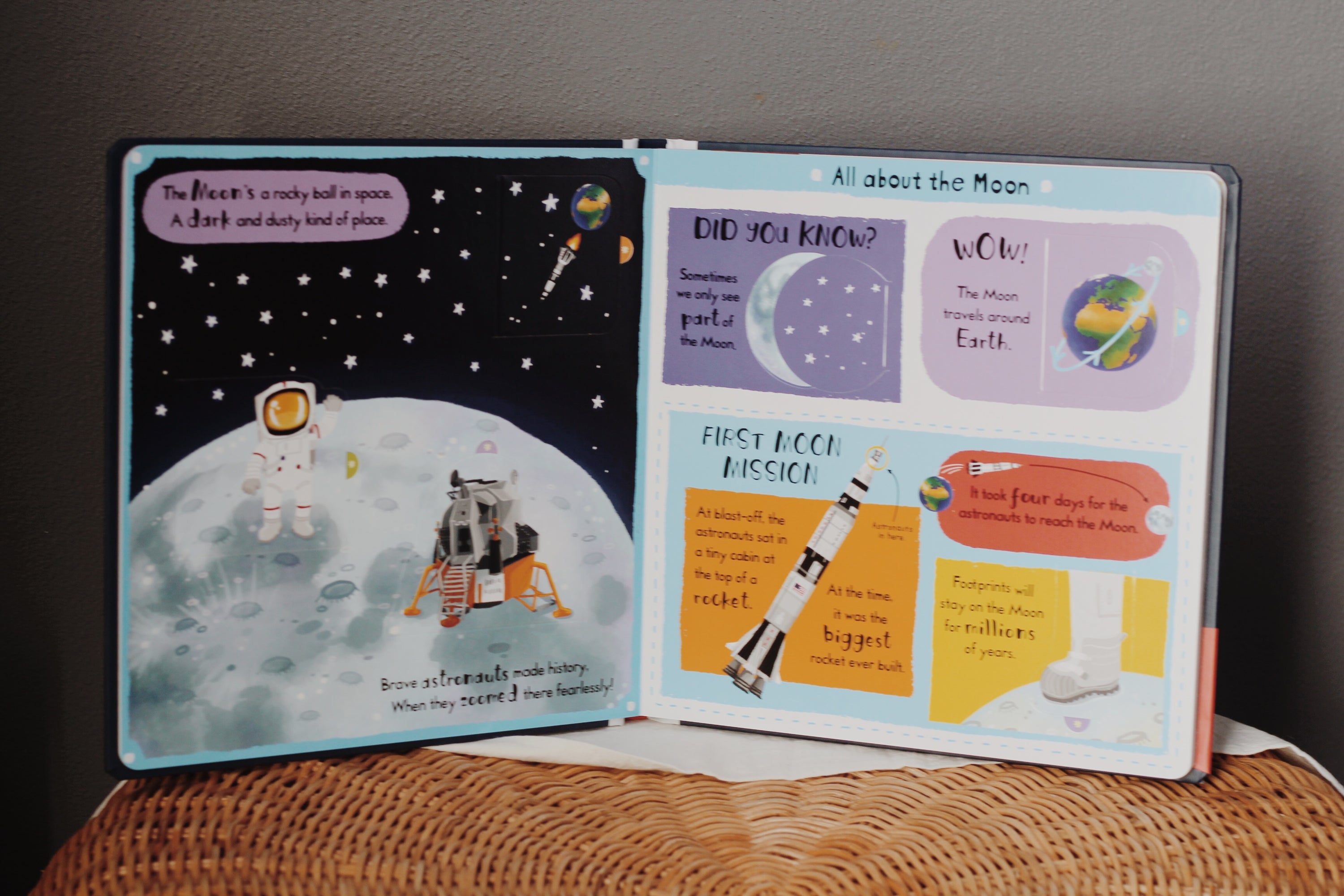 In First Facts and Flaps: Super Space preschoolers discover the wonders of stars, planets, the Moon and space travel. With colourful scenes by Lon Lee and rhymes to introduce each topic, plus over thirty flaps, a turn-and-learn wheel and giant fold-out ending, this fun novelty book encourages young children to learn as they play.