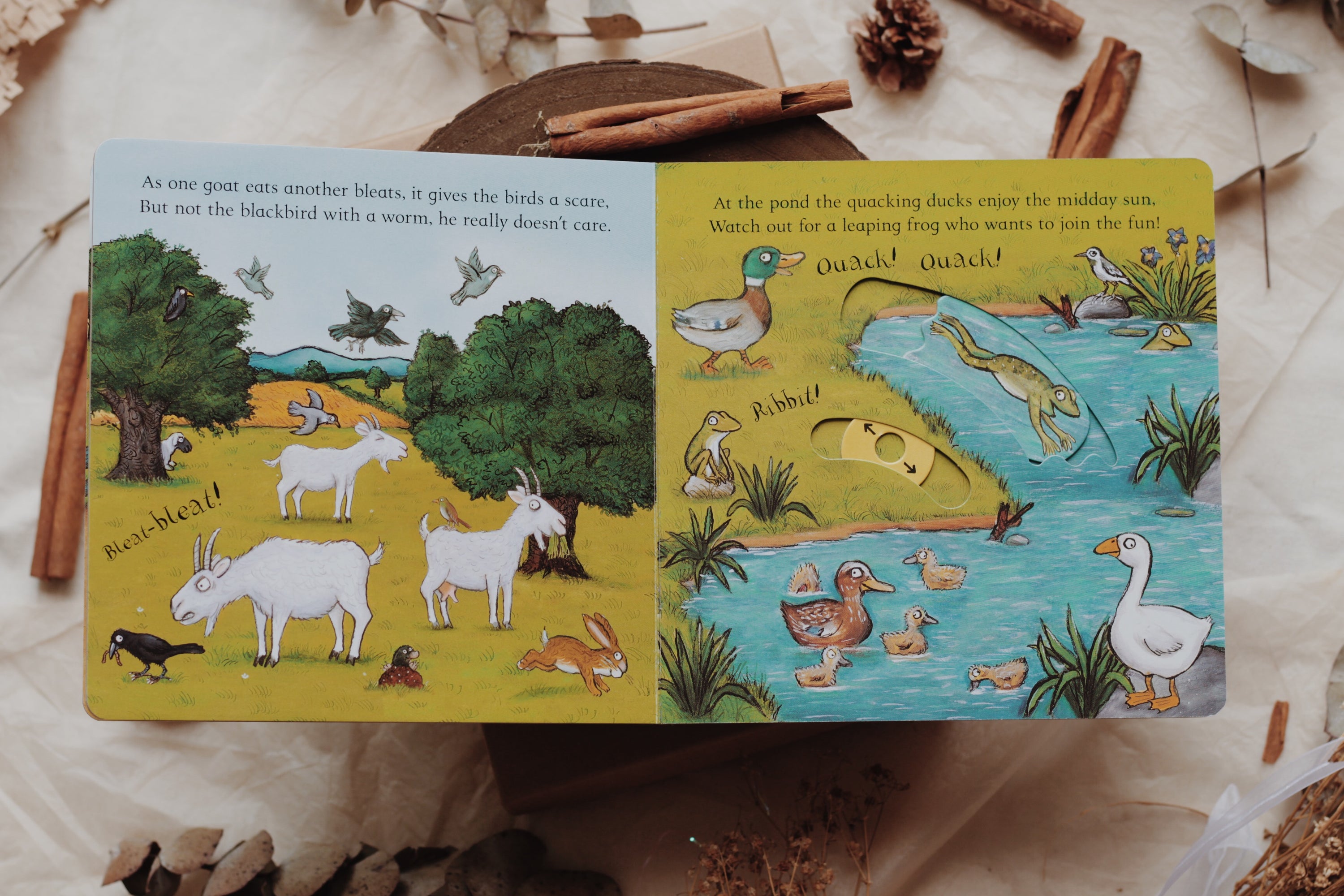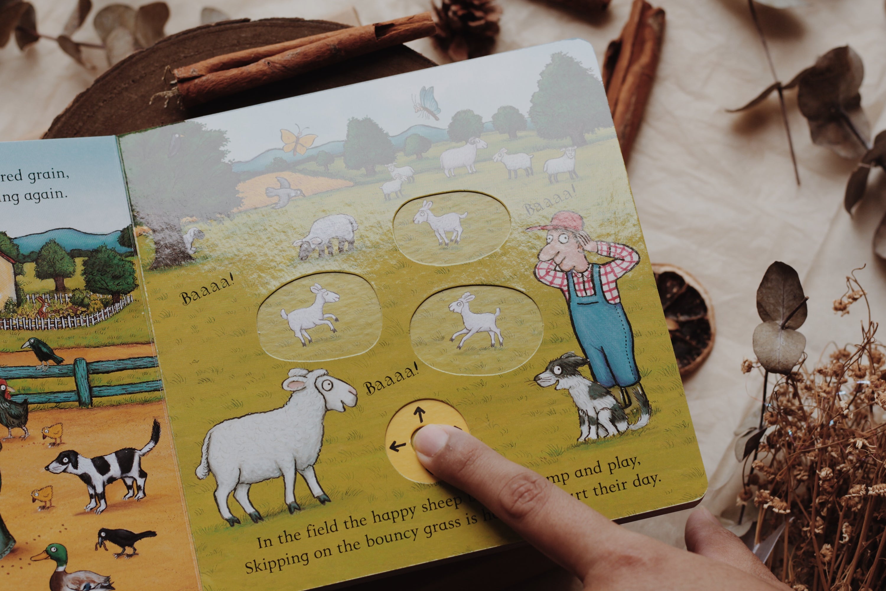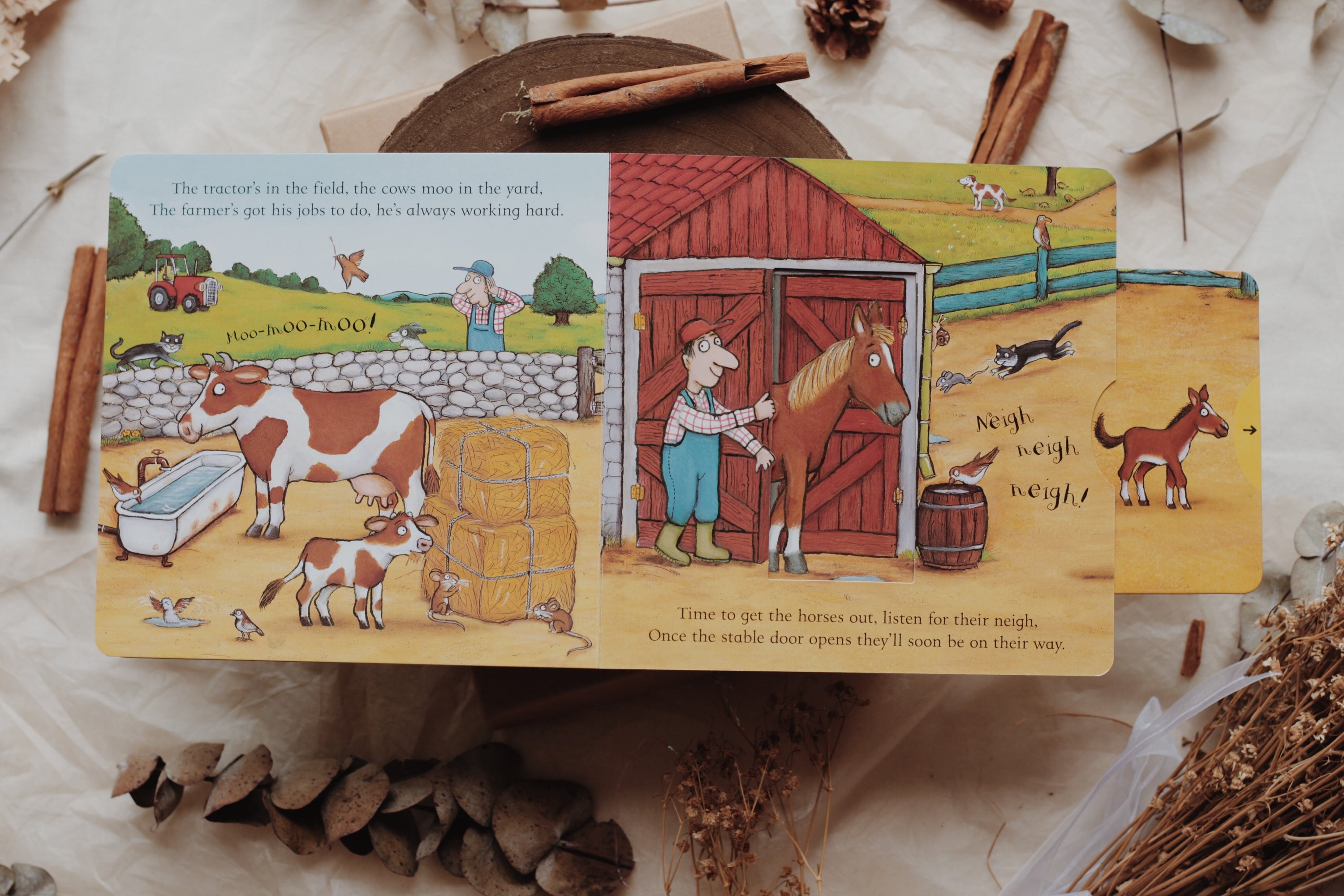 Little ones can join in the fun On the Farm by pulling out the sliders, jiggling the animals and making all the different noises!