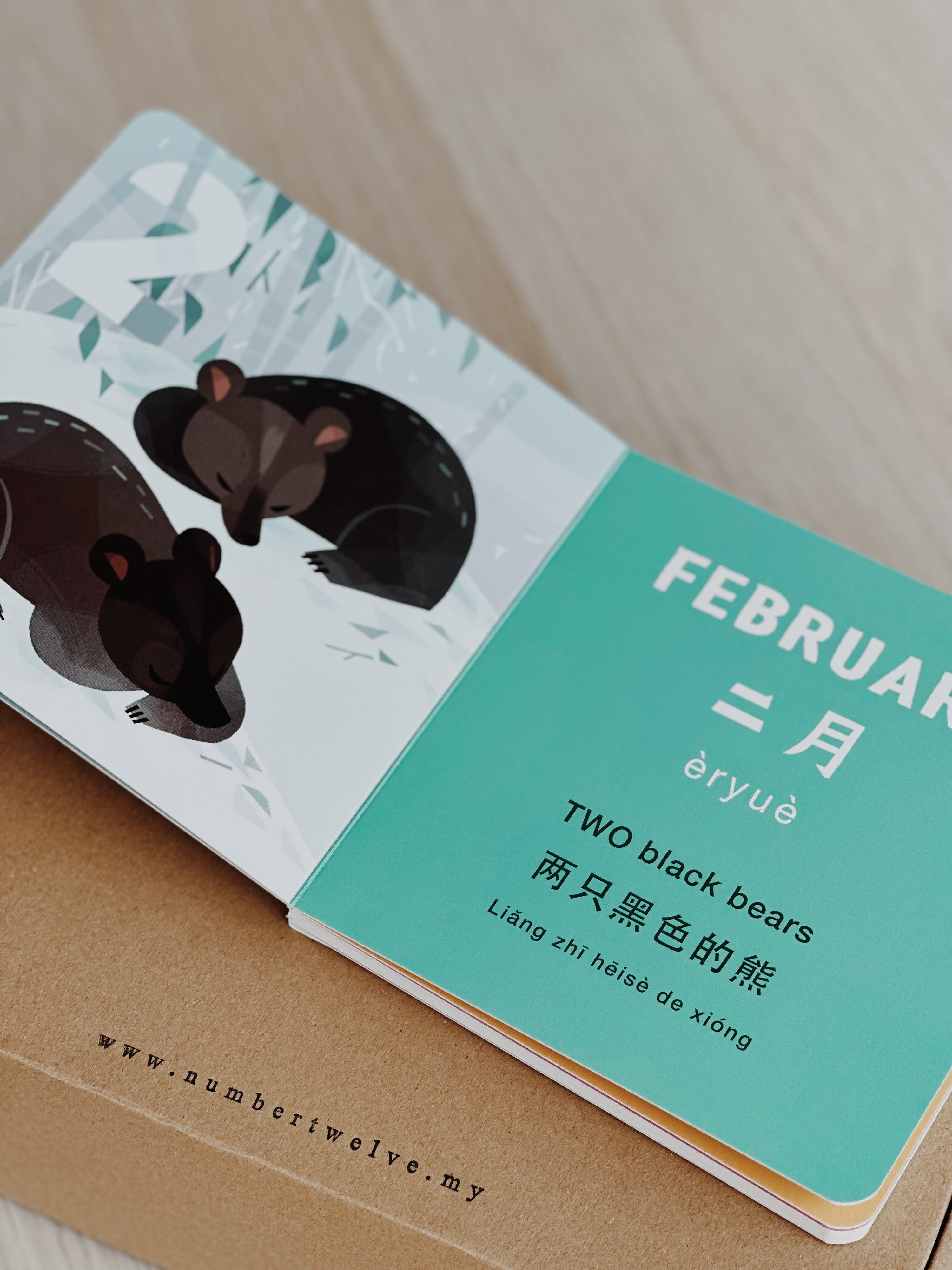 Simply told and beautifully rendered, this counting board book takes young readers through the months of the year. Each month focuses on a new animal and activity, from seals swimming in May to cicadas singing in September. Sweet, accessible text in English and Chinese pairs with eye-catching art for a wonderful repeat reading experience.