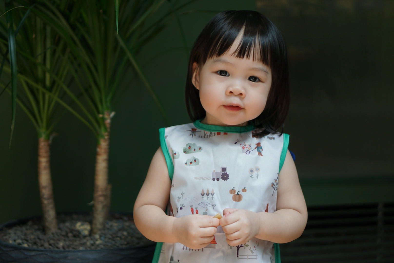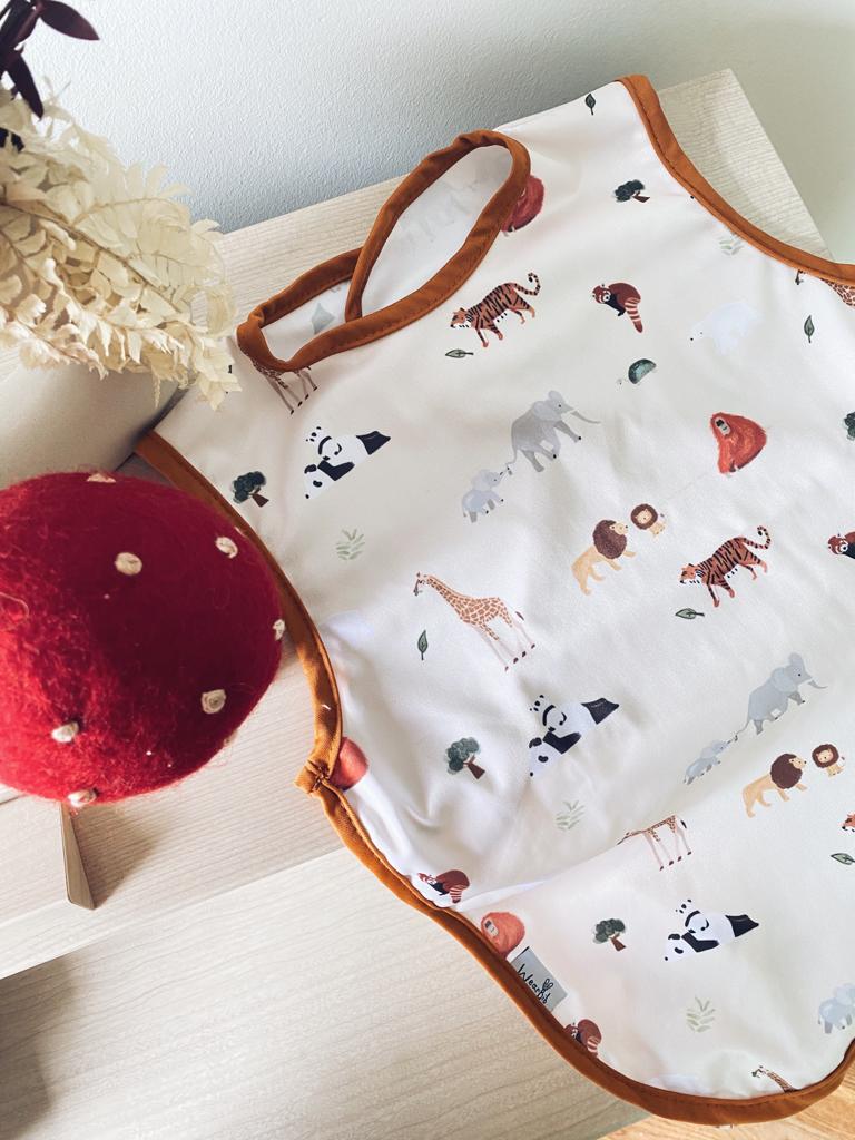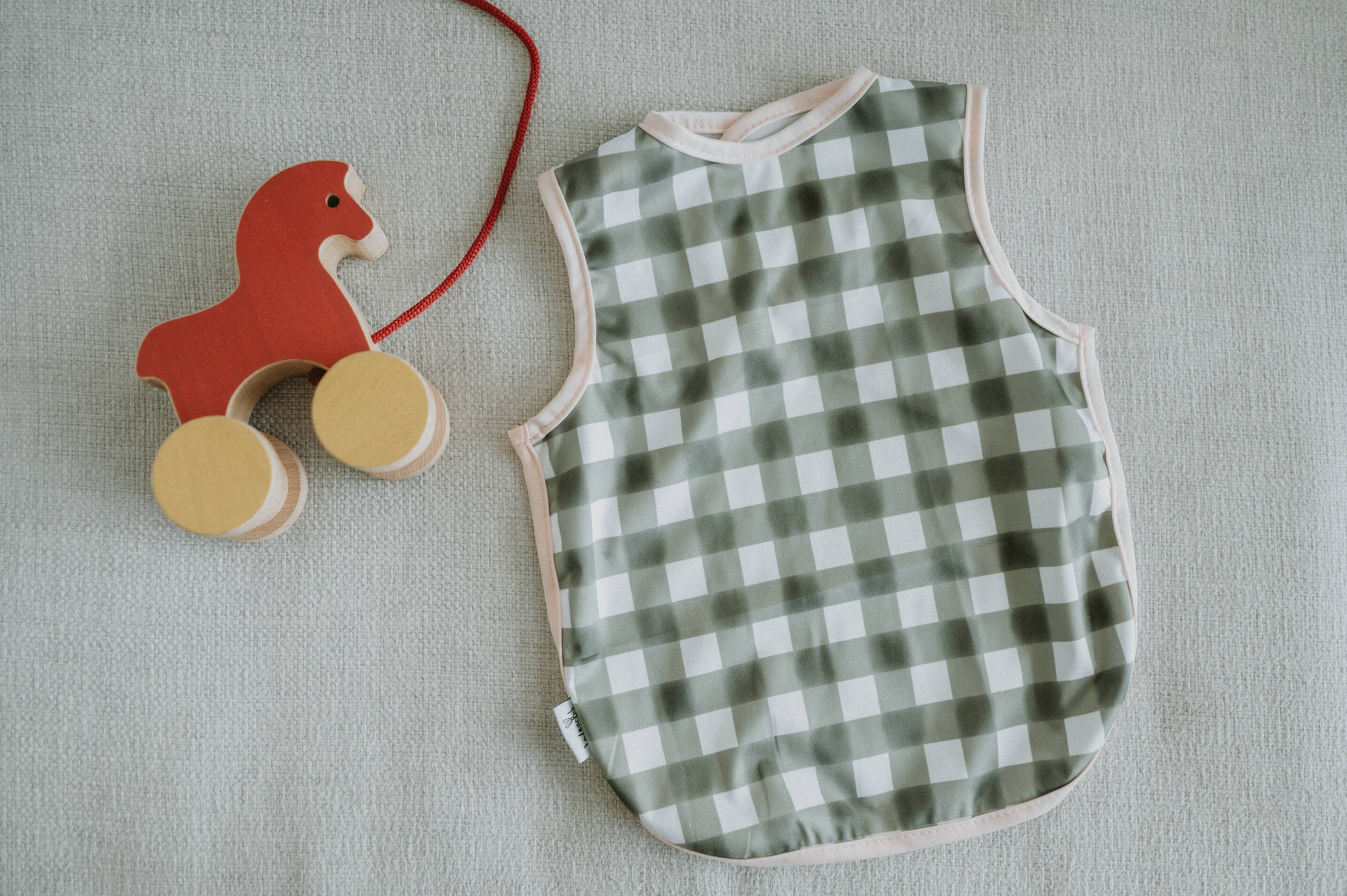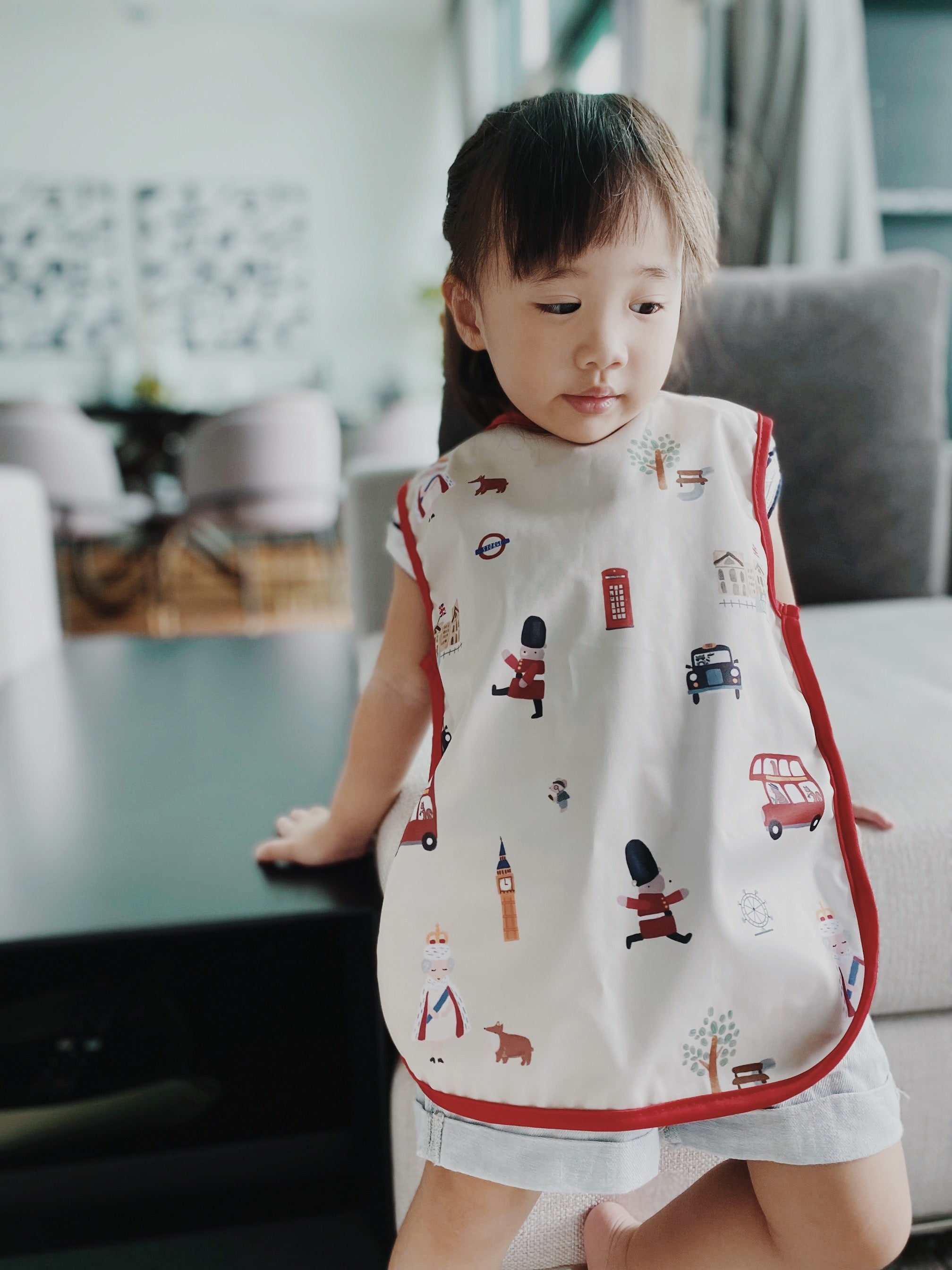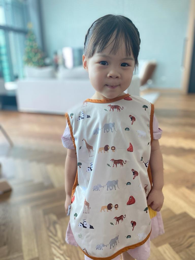 Put me on! I am really easy and comfortable to wear. With the soft velcro tape at my back, I will protect you from the mess and keep your clothes clean and dry.