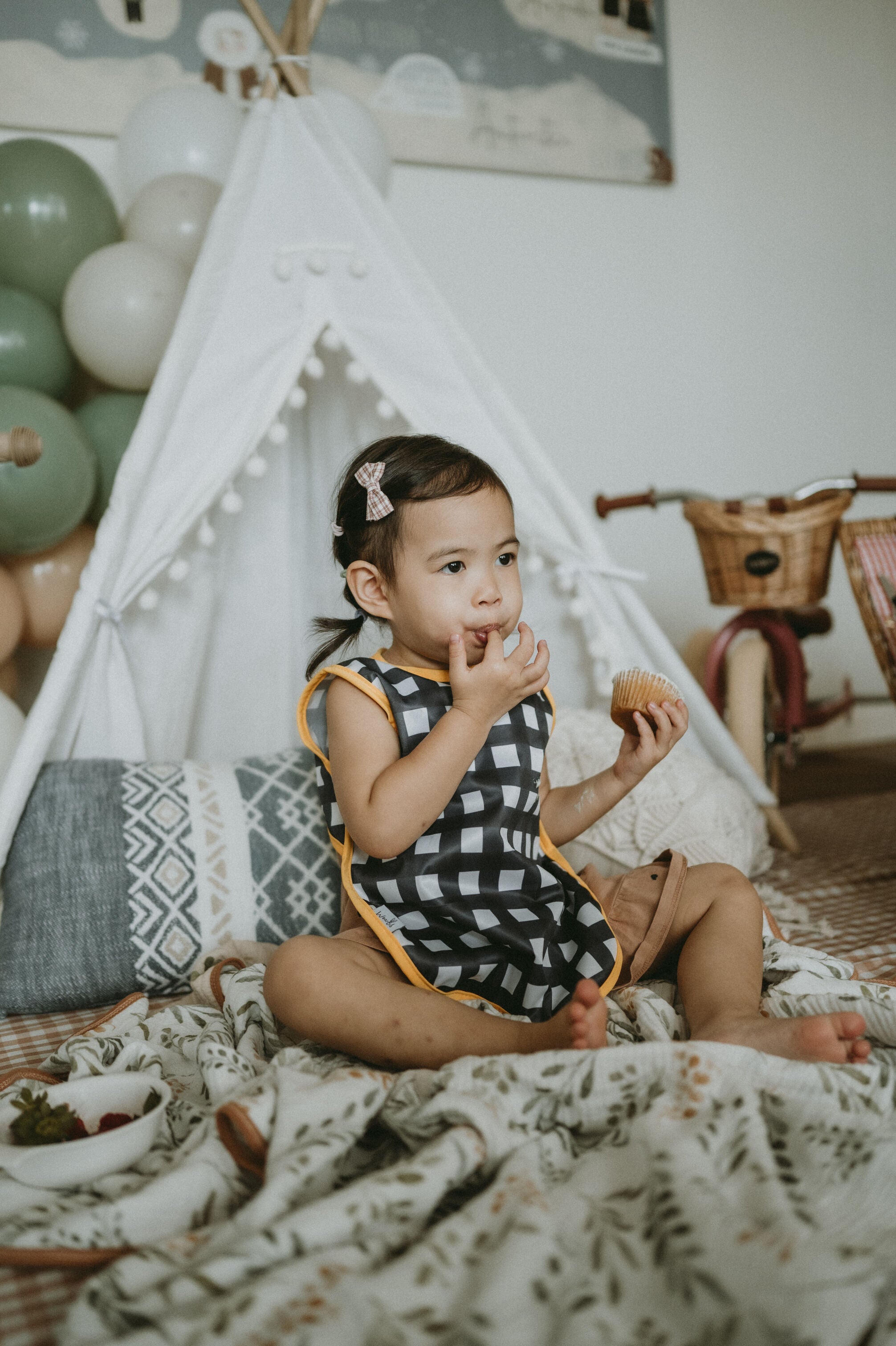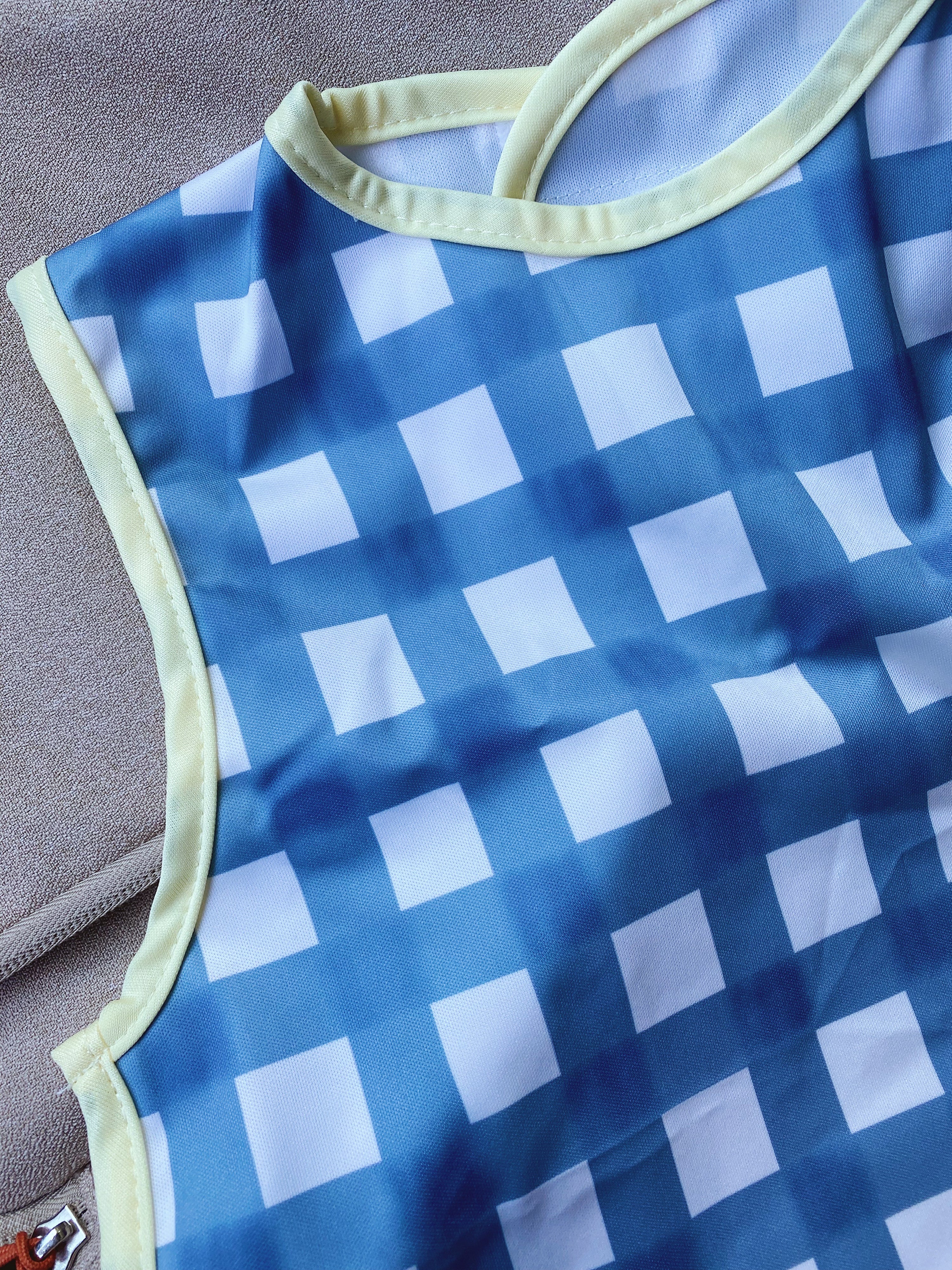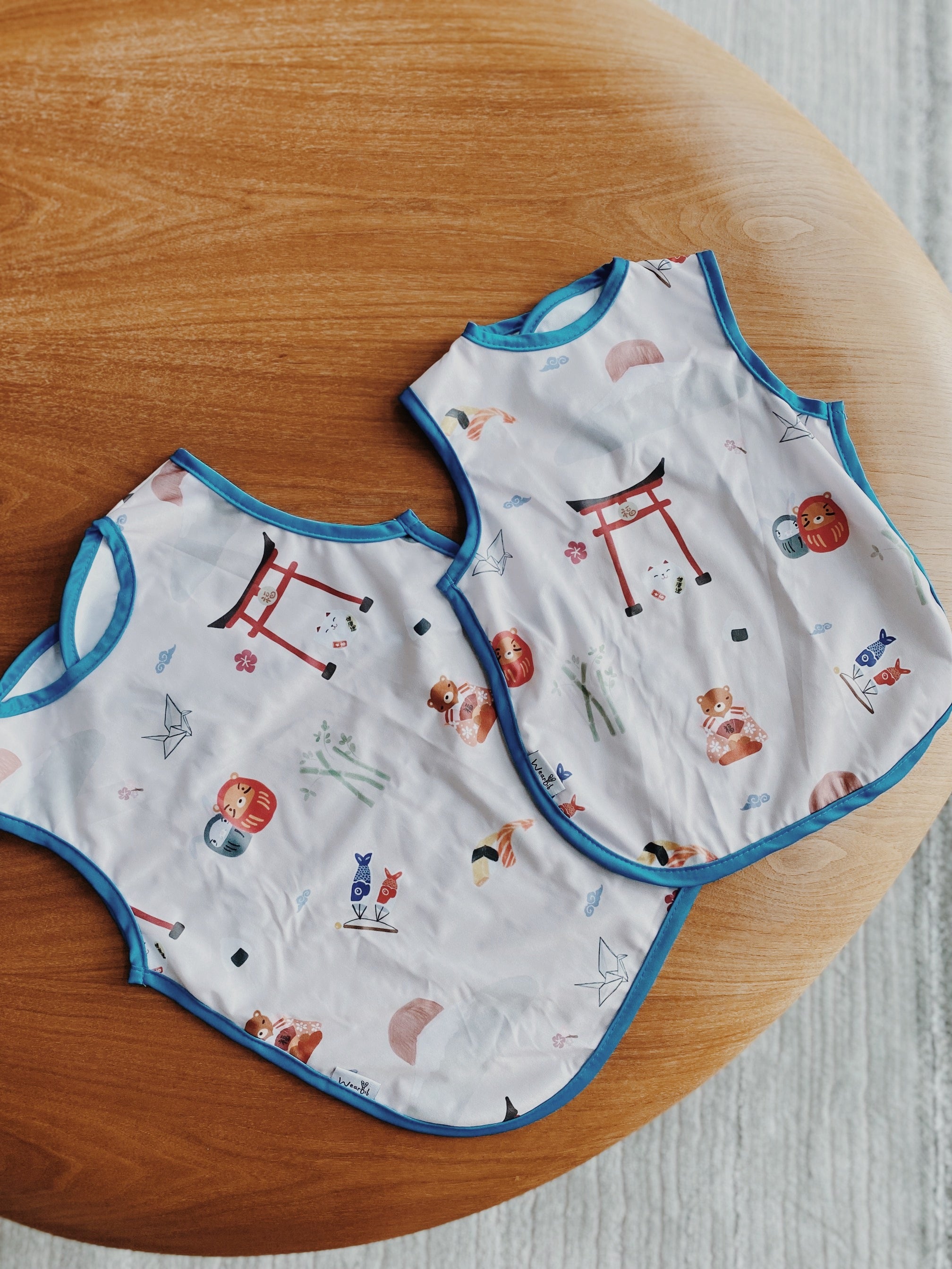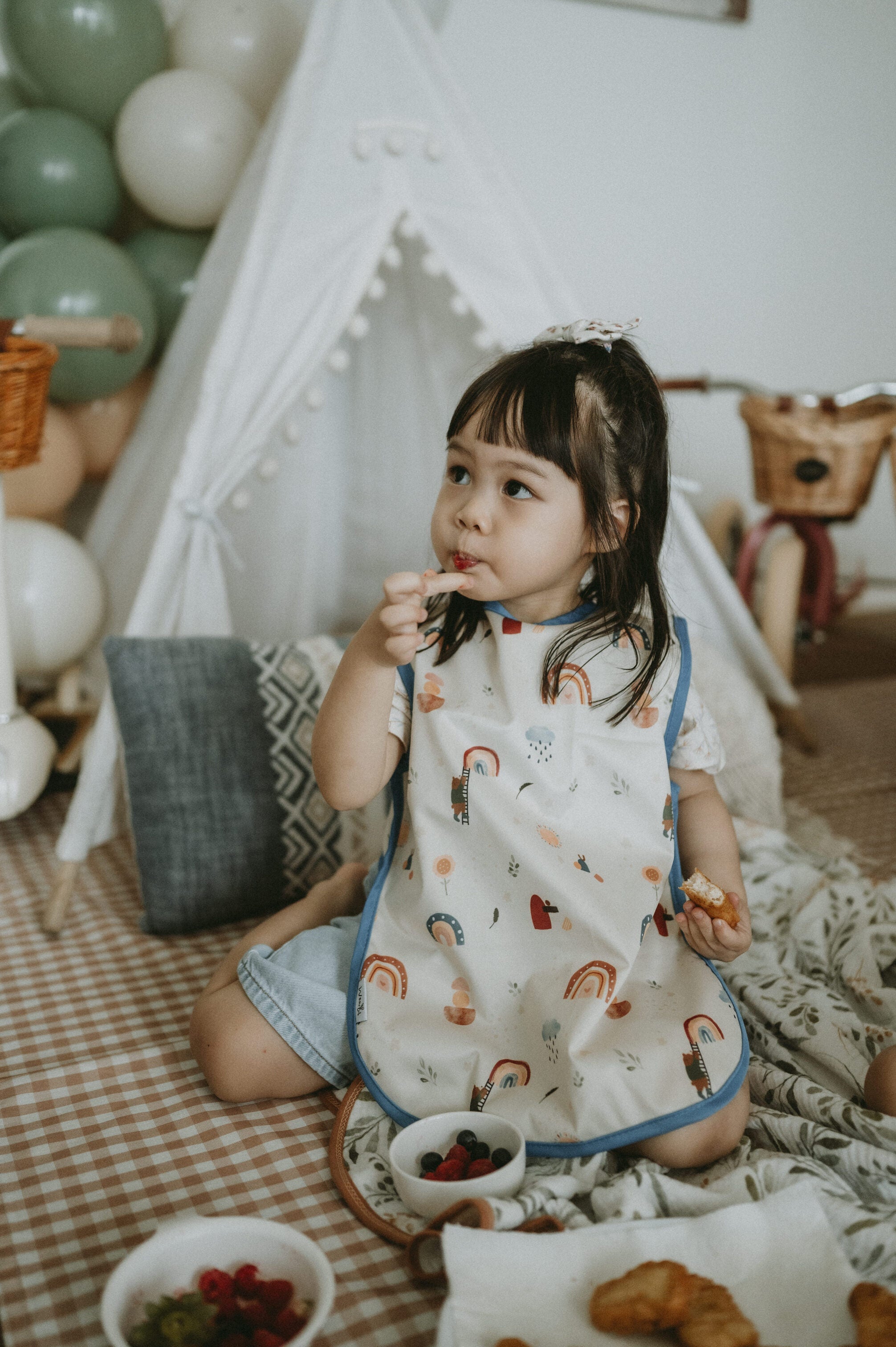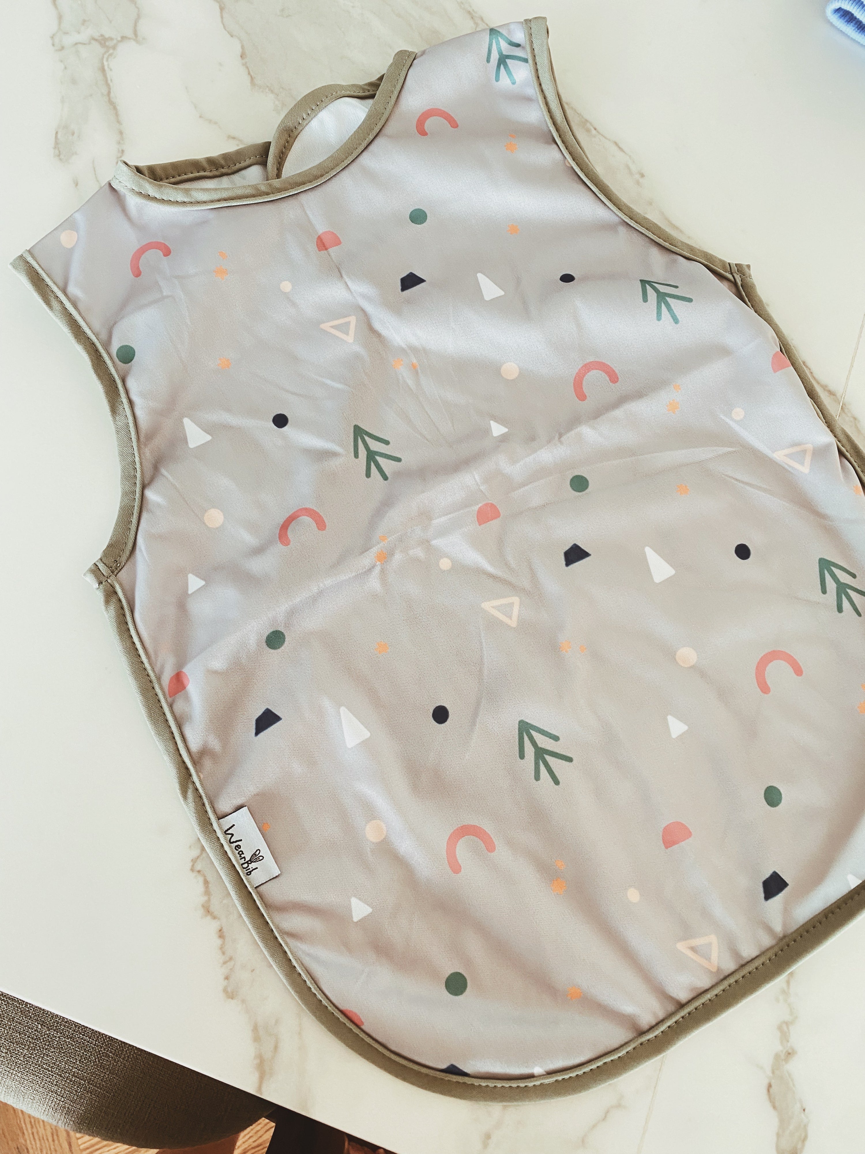 Put me on! I am really easy and comfortable to wear. With the soft velcro tape at my back, I will protect you from the mess and keep your clothes clean and dry.