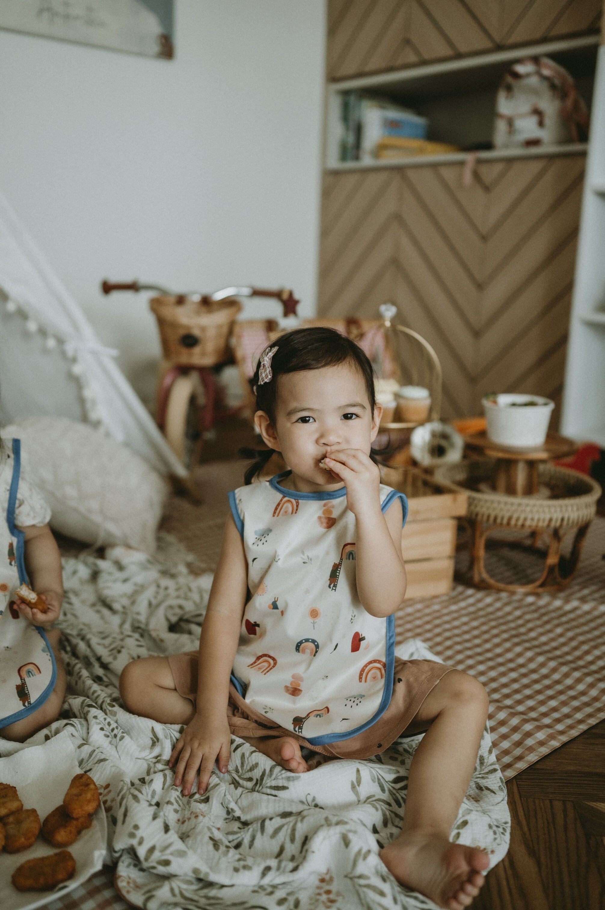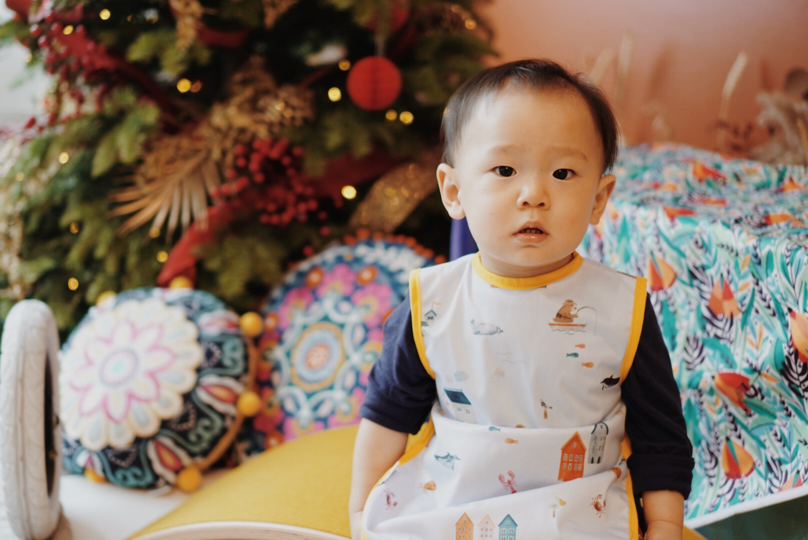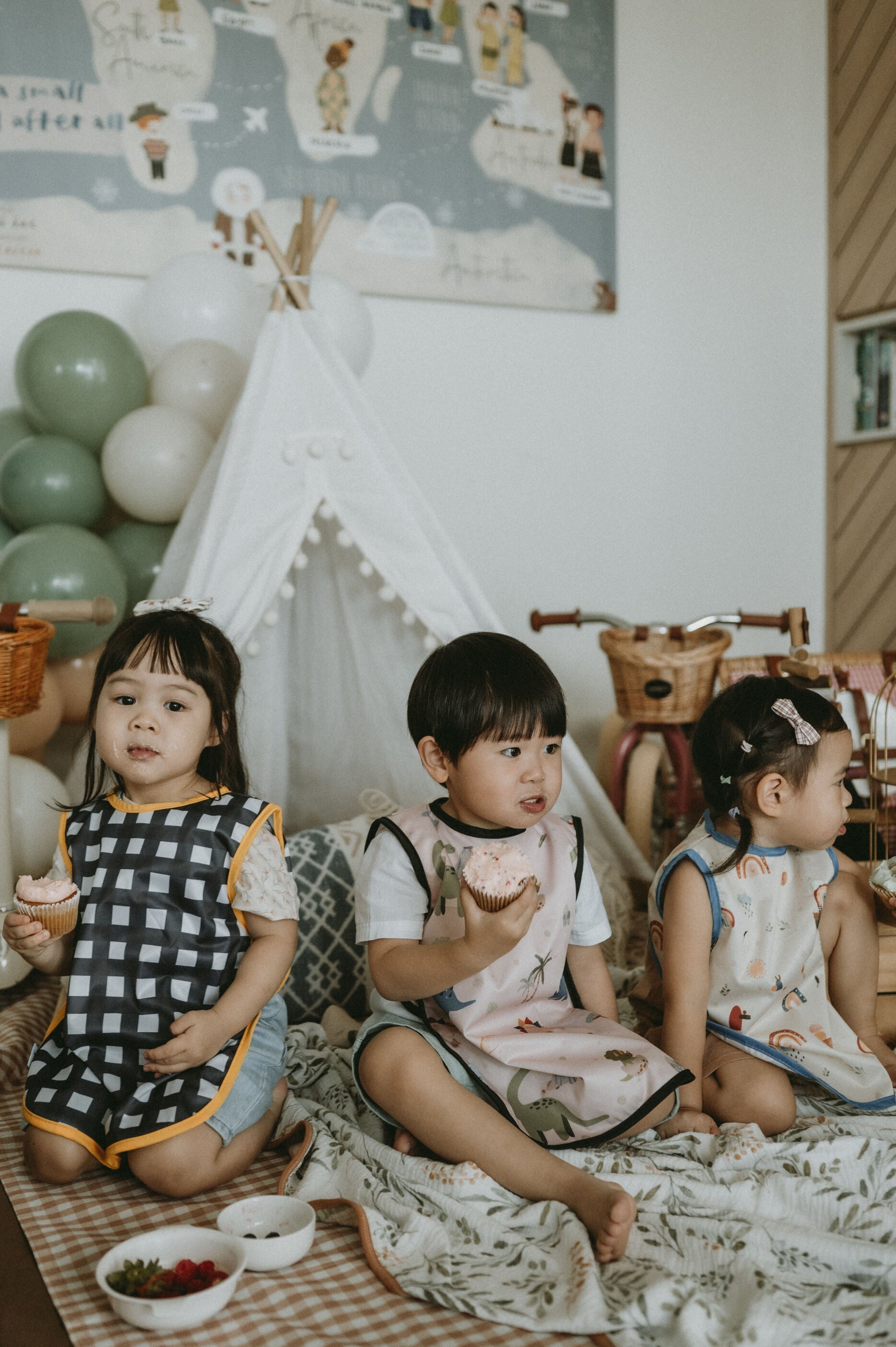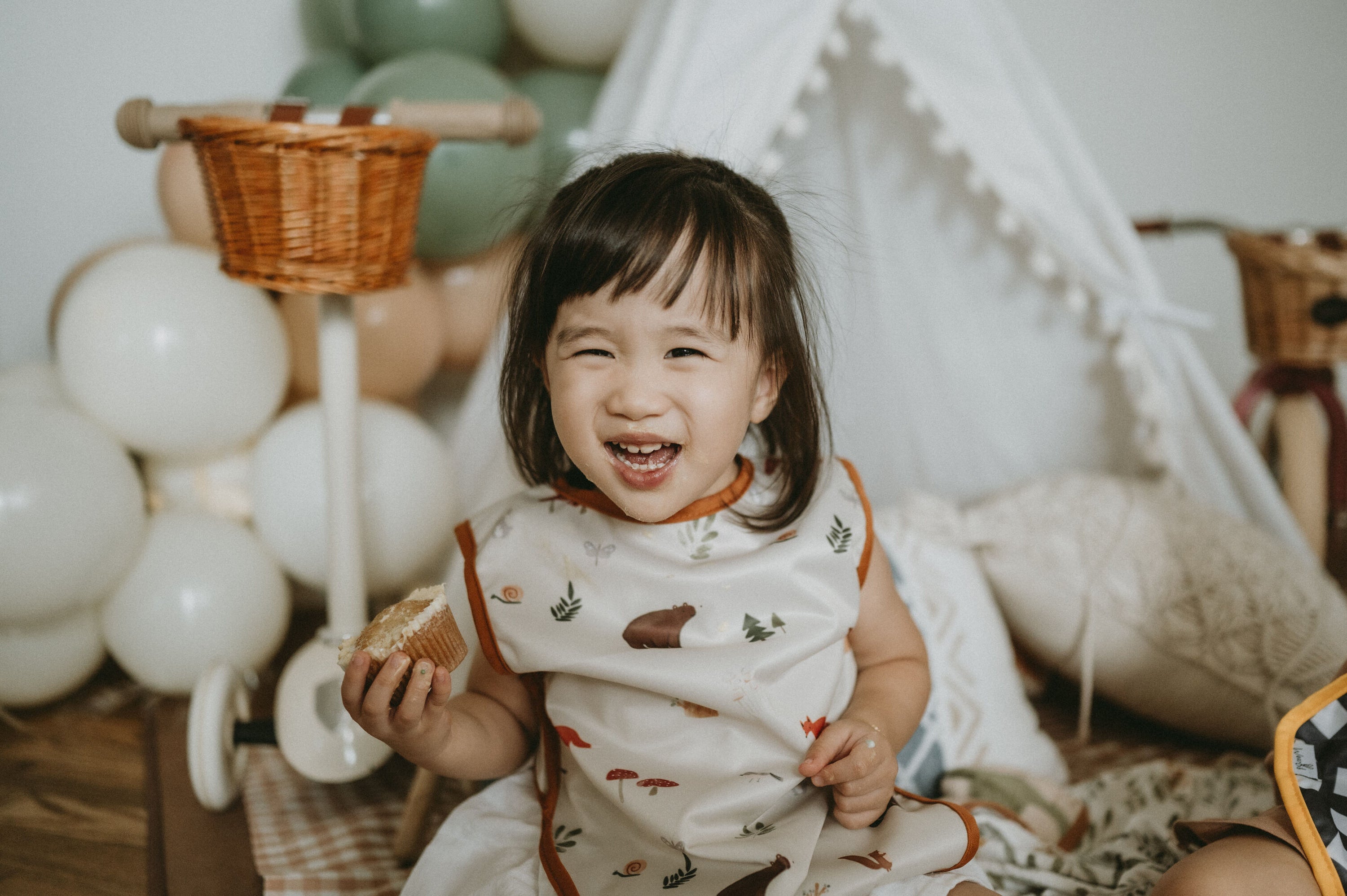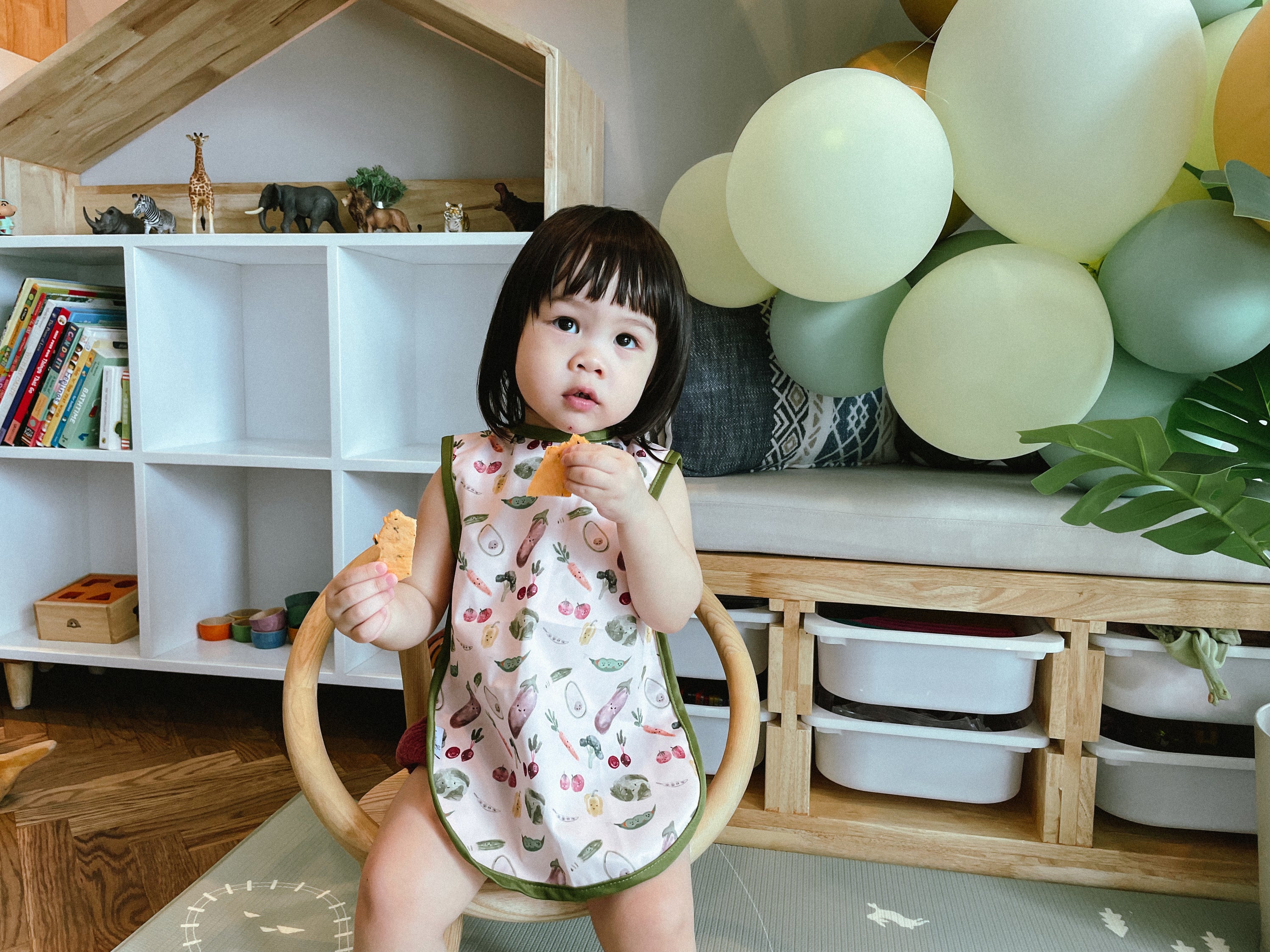 Put me on! I am really easy and comfortable to wear. With the soft velcro tape at my back, I will protect you from the mess and keep your clothes clean and dry.