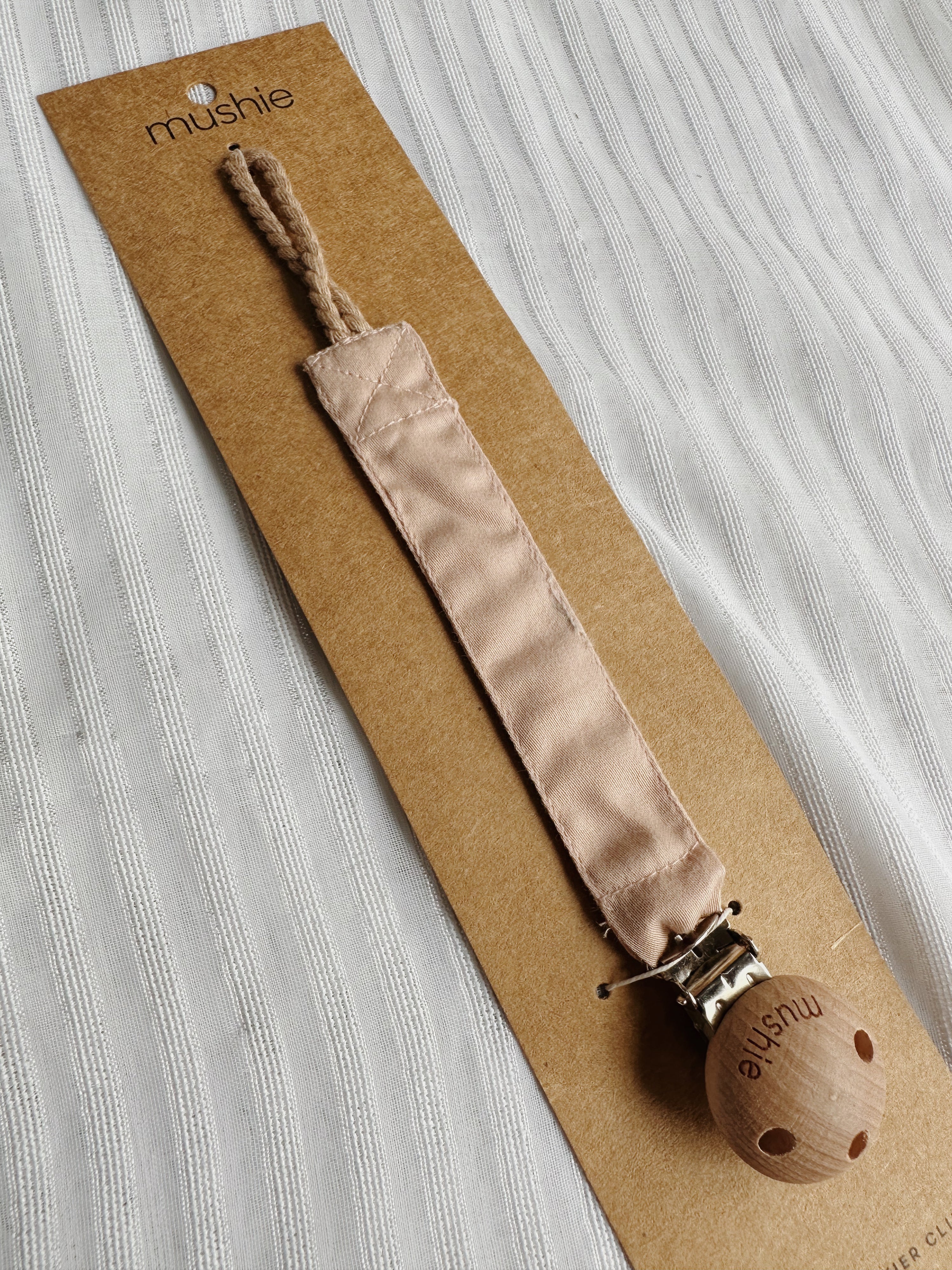 (AS IS) Mushie Fabric Pacifier Clip - Blush