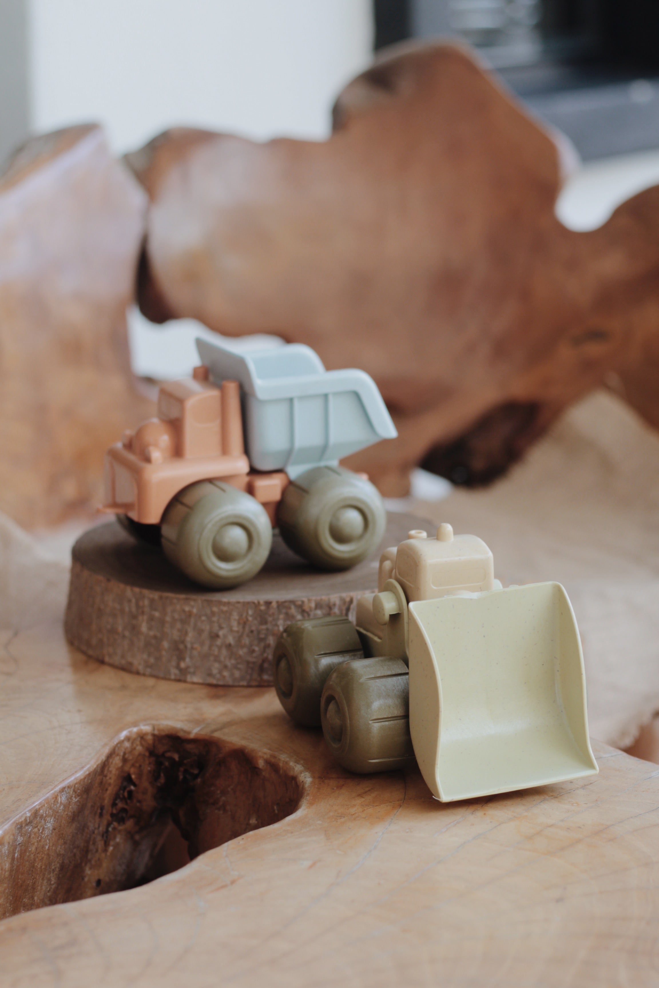 Super cool, sturdy cars, trains and planes in subdued, natural colours. They fit perfectly in small hands, they are round and pleasant to touch and they can be played with both indoors and outdoors. After a drive through the sandbox or water puddles, they are easy to clean in the dishwasher.