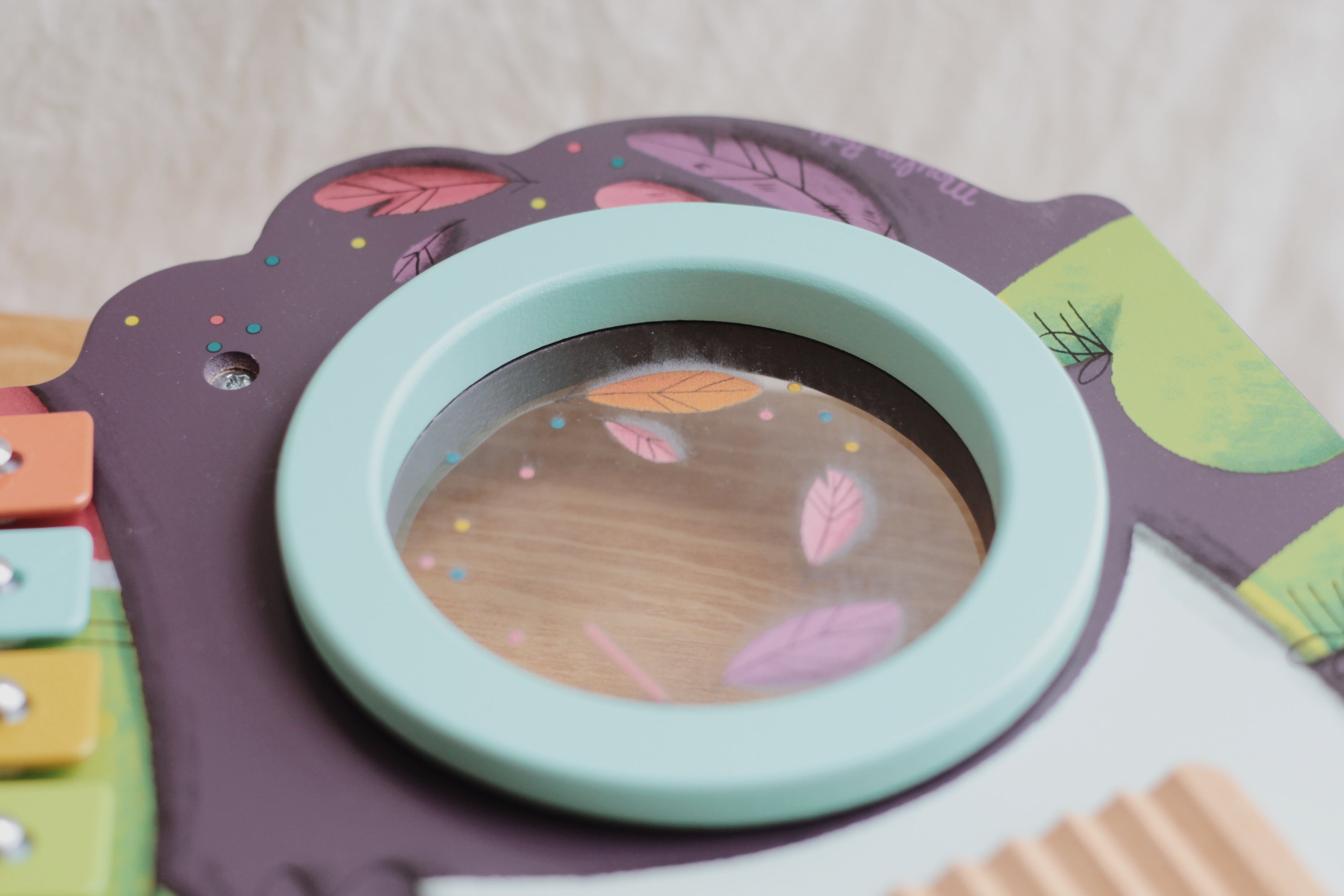 Pakou the toucan has all sorts of musical surprises in store! This fun-loving bird watches over little ones as they play the drum or glockenspiel, bang the cymbals or have fun with the washboard using the 2 wooden drumsticks!