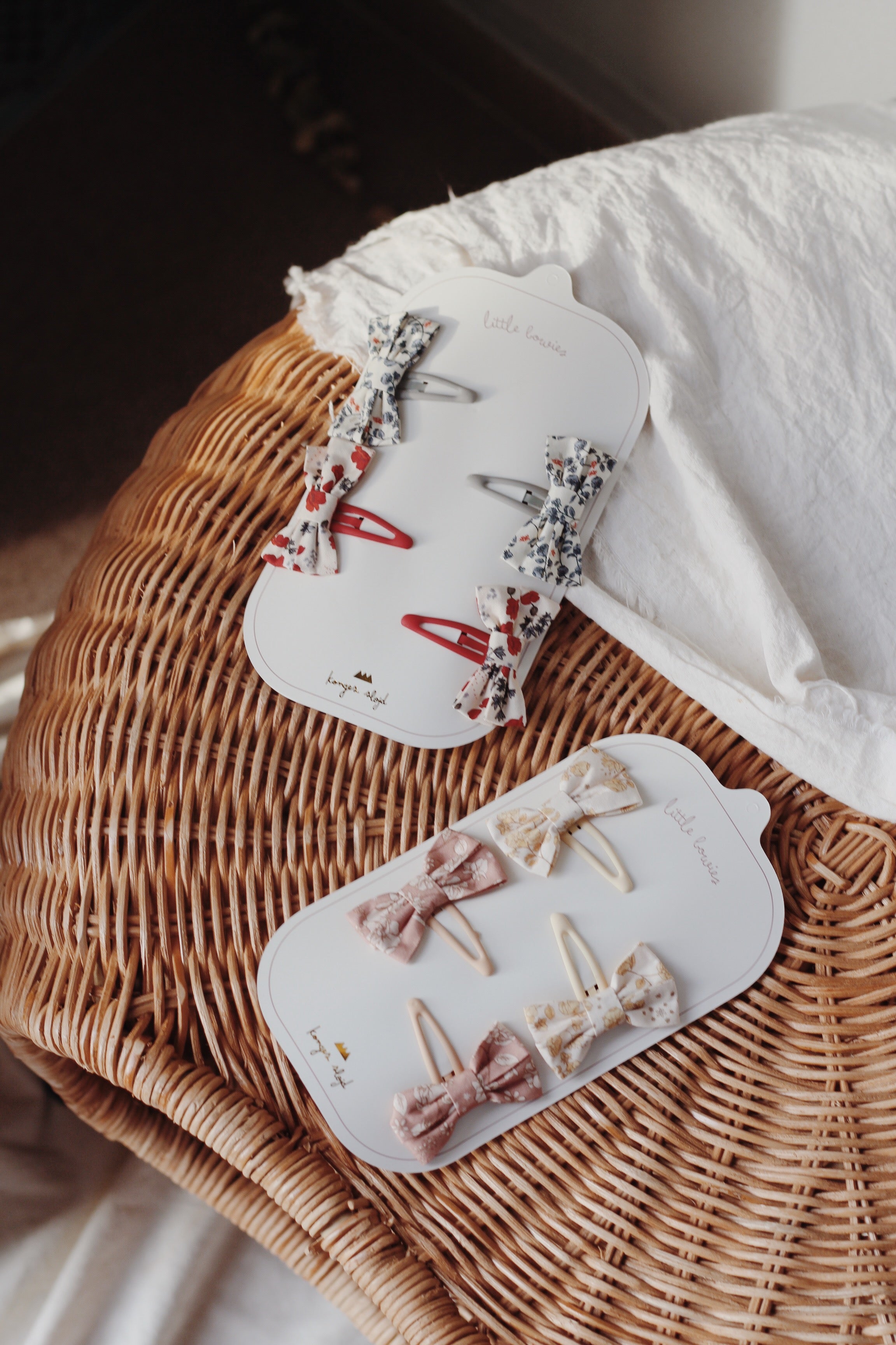 These beautiful hair clips come in a set of 4, and in the most beautiful printed fabric with a clic-clac clip fastening.