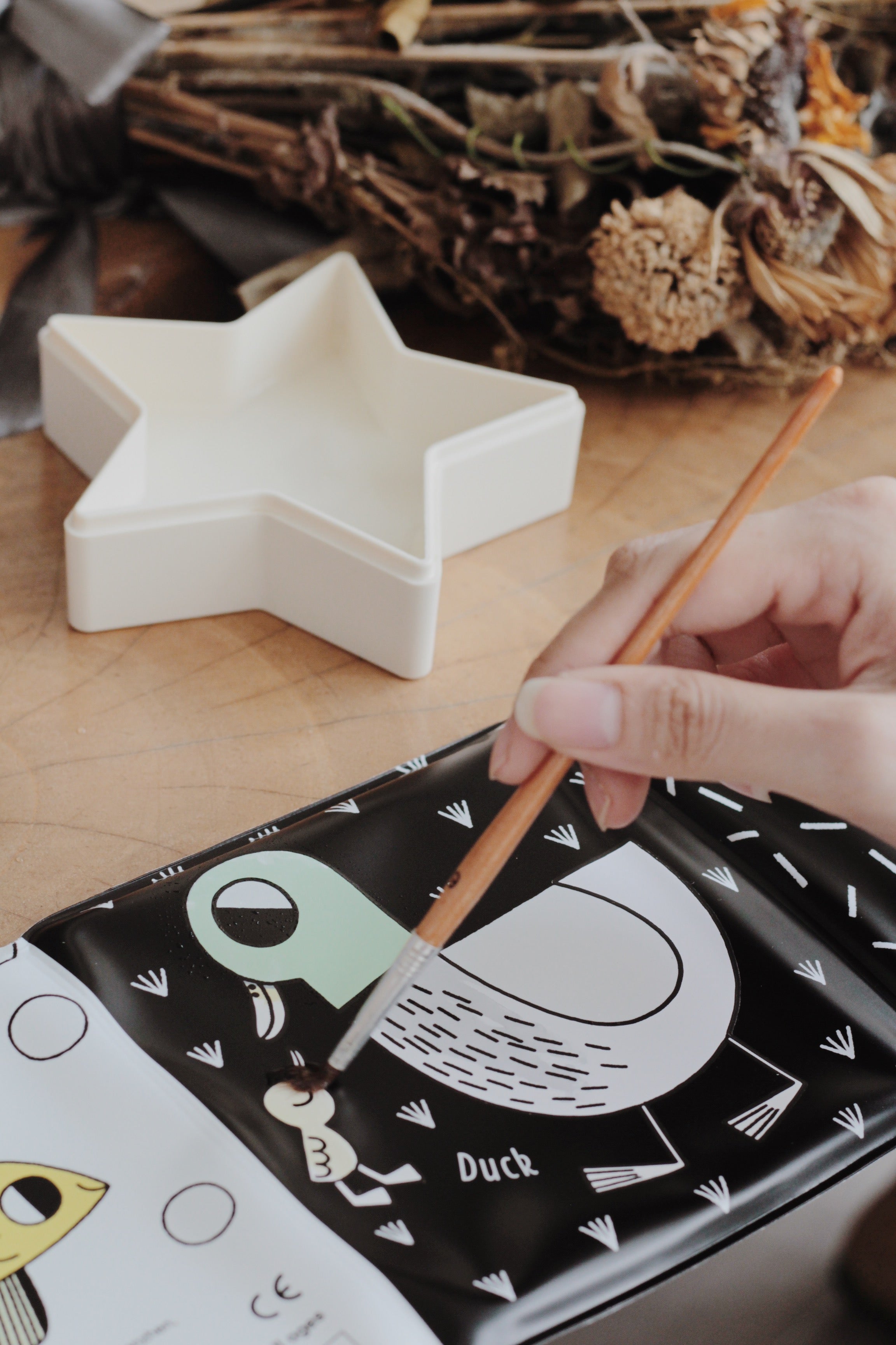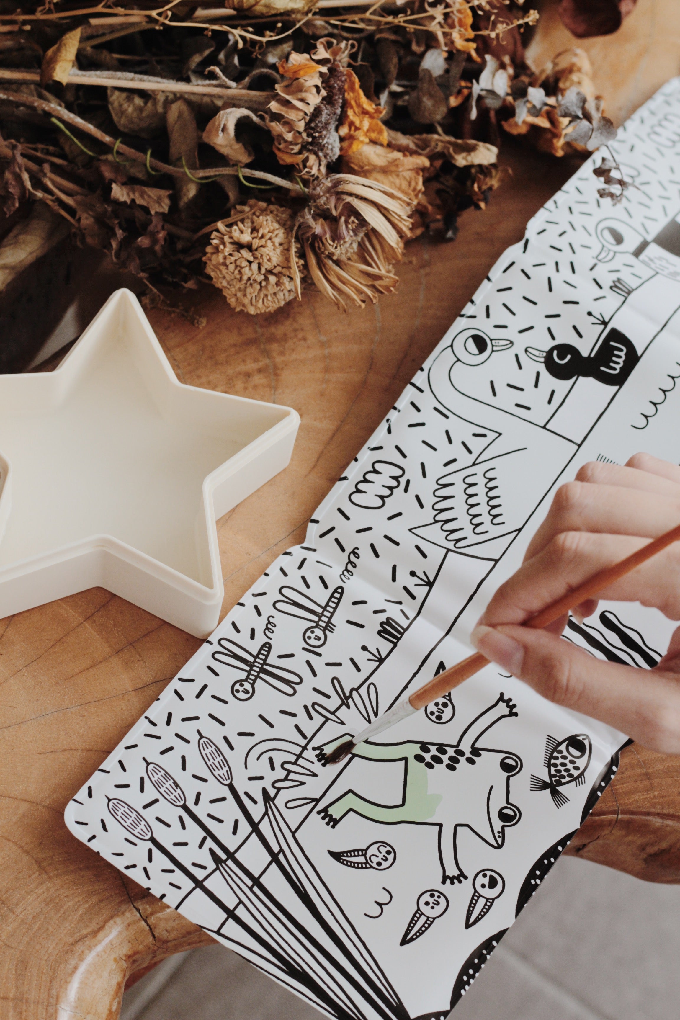 Make bath time magical with this stylishly illustrated accordion-fold bath book! Splish splash and be amazed as a beautiful black-and-white ocean habitat comes to life when brushed with water, revealing a world of colour.ย