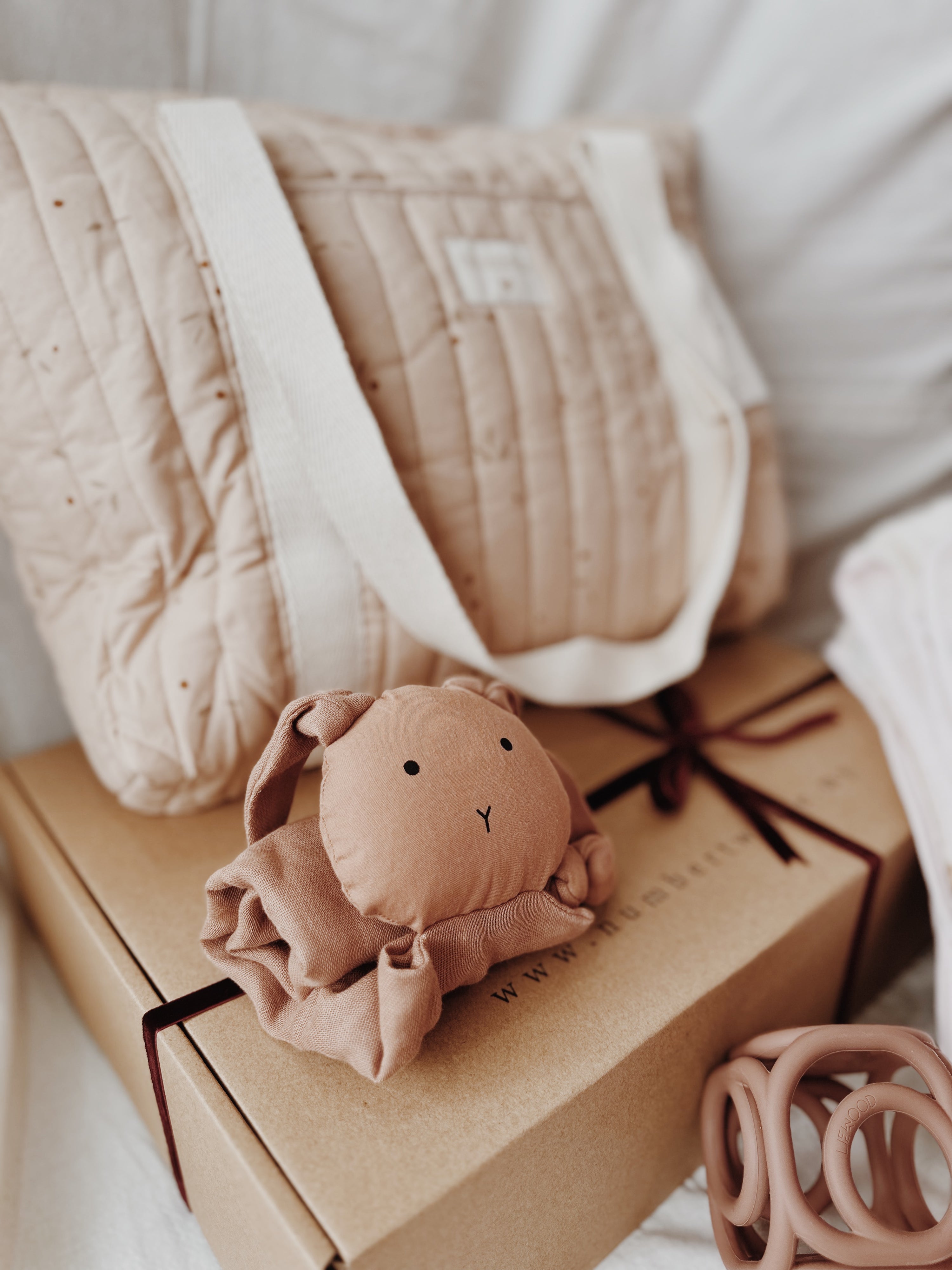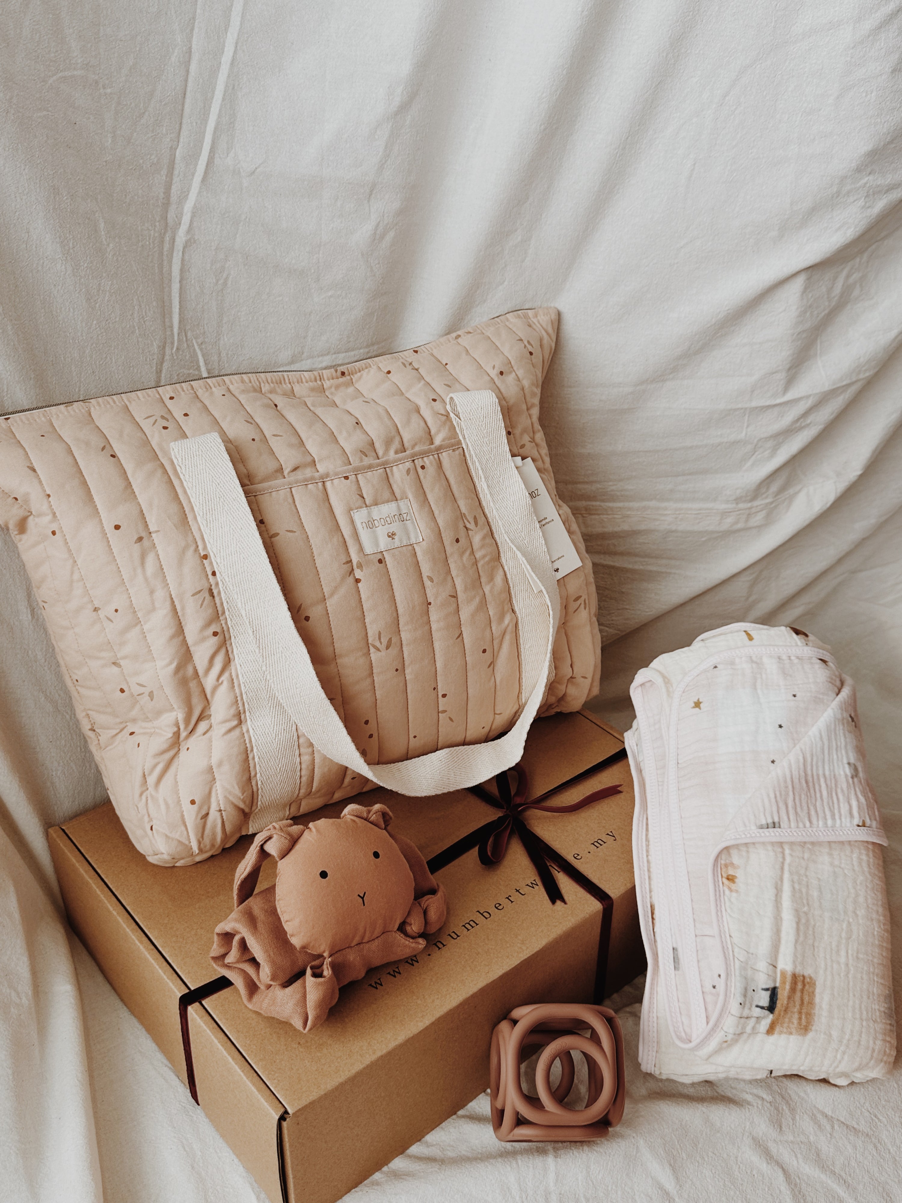 An exclusive premium gift set not only for the little one but for the mama too! Cuddle cloth and blanket to keep the little one cozy, accompanied with arnaud teether to encourage sensory touch and play. Maternity bag for mama to keep all the essential while on the go!