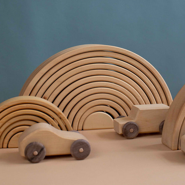 This rainbowstacker encourages open-ended play as the arches can be used as tunnels, hills, rocking chairs for your play pretend dolls. You can stack, build houses, create mesmerising ball runs or even act as fences.ย